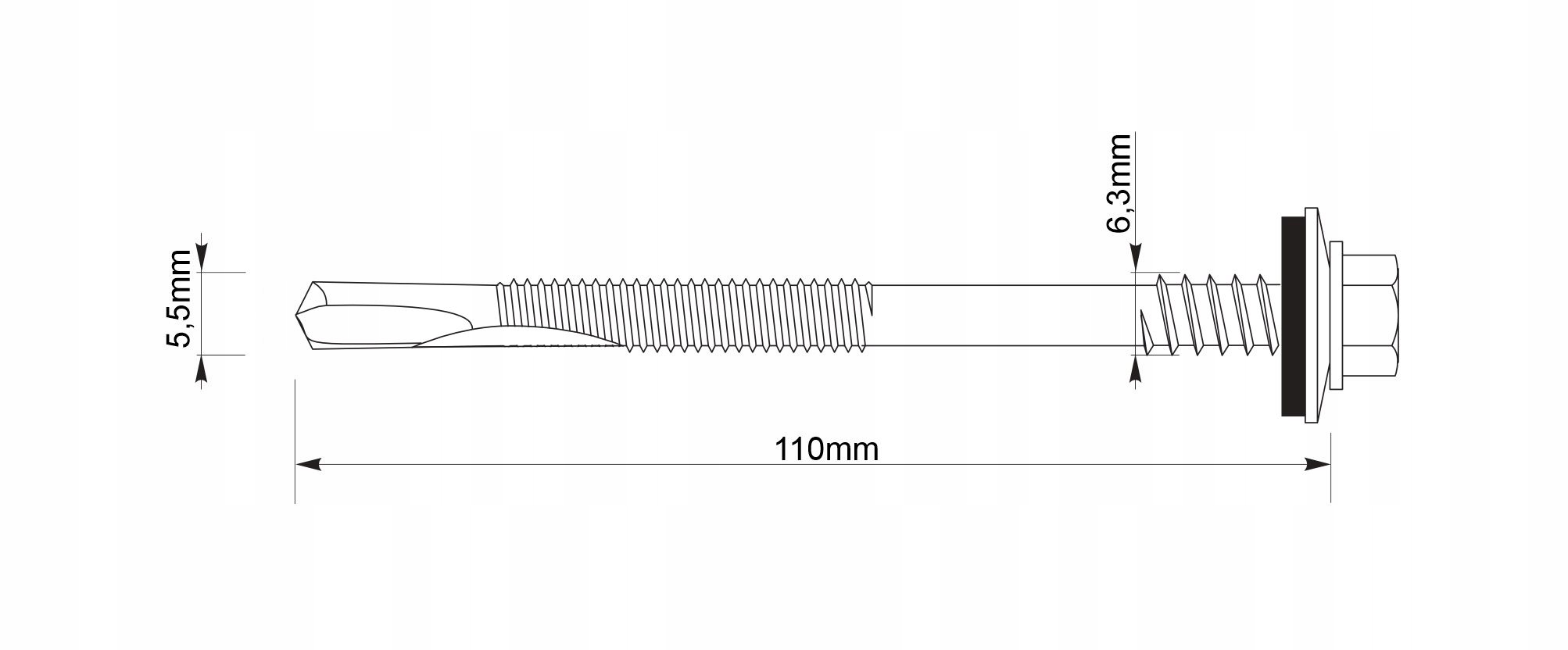 Dodatkowy gwint o zwiększonej średnicy zapewnia właściwe rozłożenie podkładki EPDM na cienkich blachach okładzinowych płyty warstwowej.