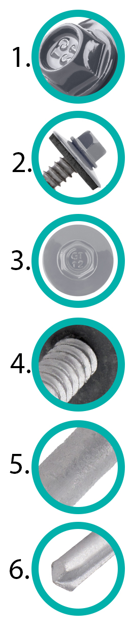 Dodatkowy gwint o zwiększonej średnicy zapewnia właściwe rozłożenie podkładki EPDM na cienkich blachach okładzinowych płyty warstwowej.