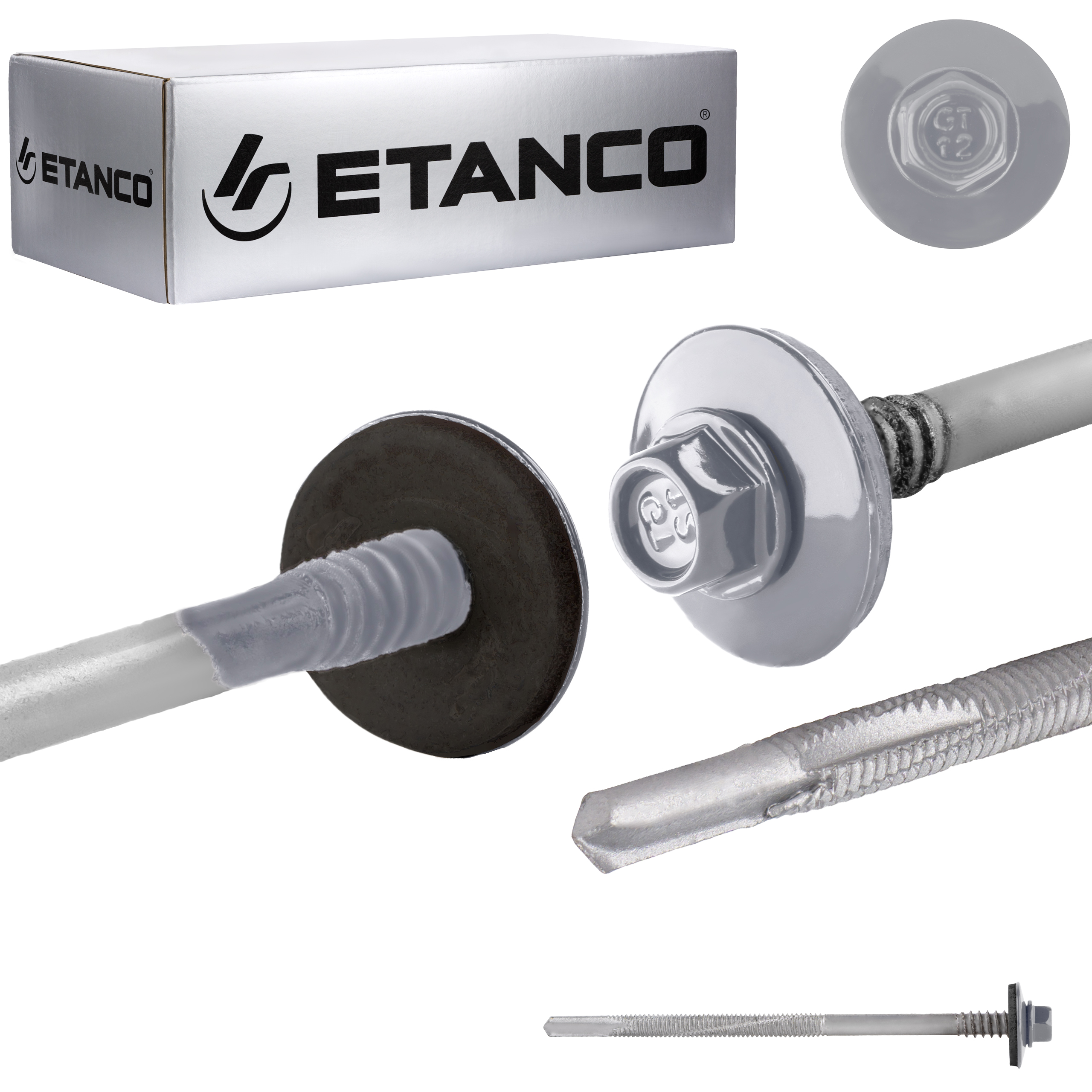 Łeb sześciokątny zapewnia łatwy i pewny montaż wkrętów, co znacząco ułatwia pracę i zwiększa efektywność montażu. Charakterystyczne znakowanie produktów ETANCO, pozwala na ich łatwe rozpoznanie, każda partia produkcyjna otrzymuje unikalny numer, co umożliwia jej precyzyjną identyfikację.