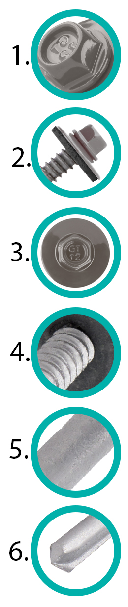 Dodatkowy gwint o zwiększonej średnicy zapewnia właściwe rozłożenie podkładki EPDM na cienkich blachach okładzinowych płyty warstwowej.
