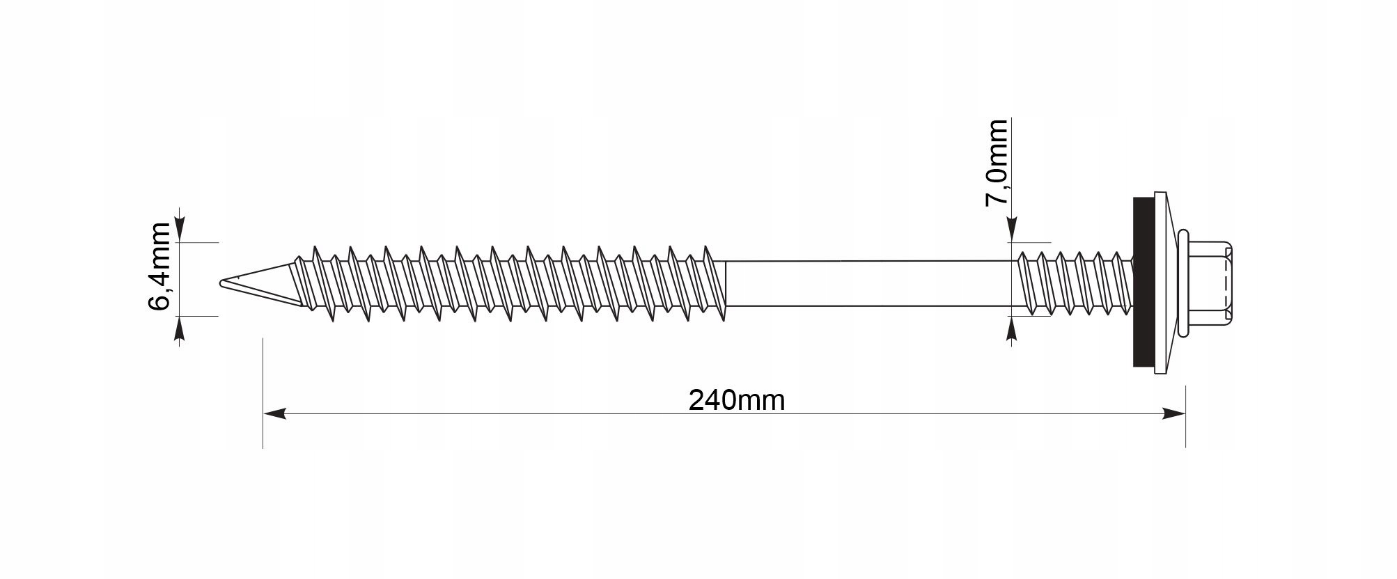 Dodatkowy gwint o zwiększonej średnicy zapewnia właściwe rozłożenie podkładki EPDM na cienkich blachach okładzinowych płyty warstwowej.