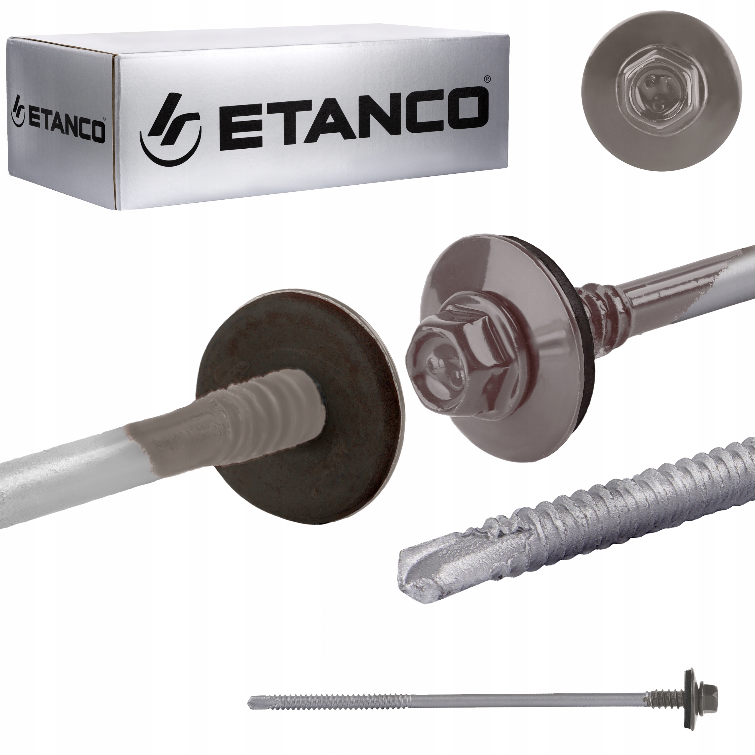 Łeb sześciokątny zapewnia łatwy i pewny montaż wkrętów, co znacząco ułatwia pracę i zwiększa efektywność montażu. Charakterystyczne znakowanie produktów ETANCO, pozwala na ich łatwe rozpoznanie, każda partia produkcyjna otrzymuje unikalny numer, co umożliwia jej precyzyjną identyfikację.