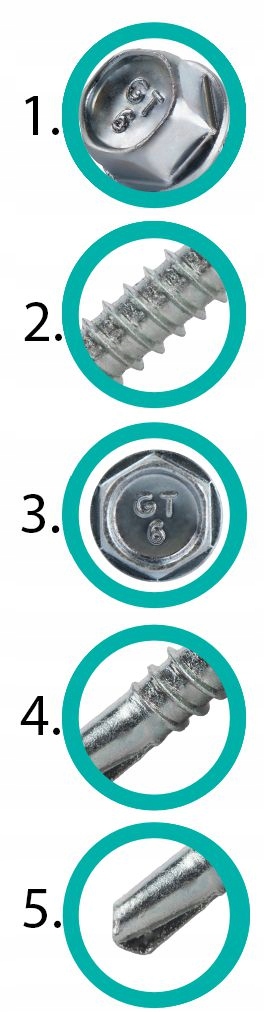Łeb sześciokątny zapewnia łatwy i pewny montaż wkrętów, co znacząco ułatwia pracę i zwiększa efektywność montażu.