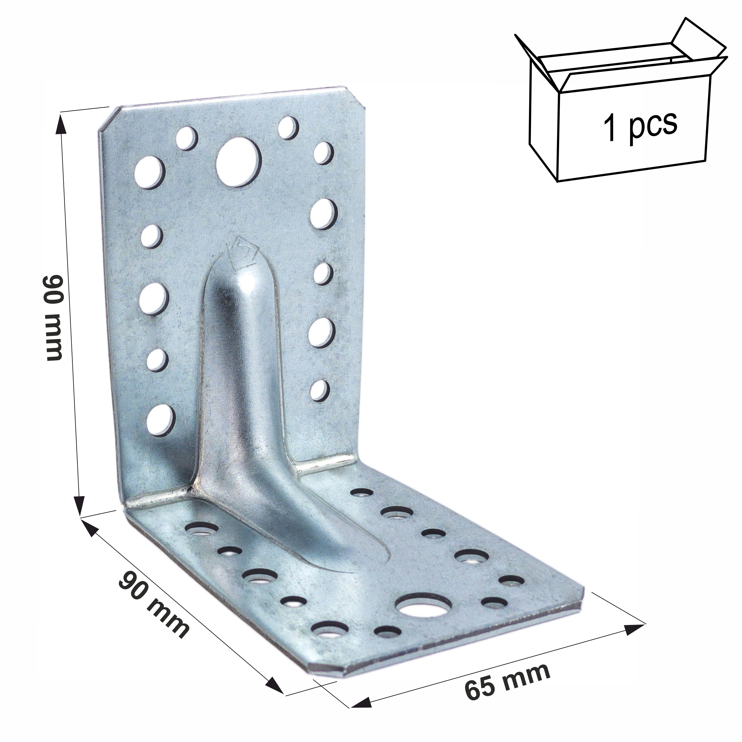 Opinie o Kątownik ciesielski stalowy 90x90x65 x 2,5mm 1 szt. perforowany wzmoc. KP1