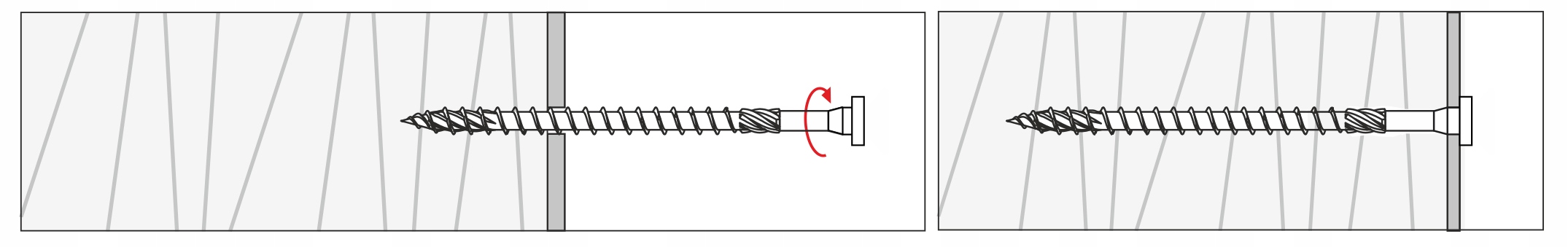 Poszerzona średnica wkręta pod łbem zwiększa wytrzymałość na ścinanie oraz zapewnia idealne dopasowanie do otworów znajdujących się w złączach ciesielskich. Początkowo sfazowana część pod łbem zapewnia bezproblemowe osadzenie wkręta w otworze.