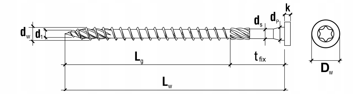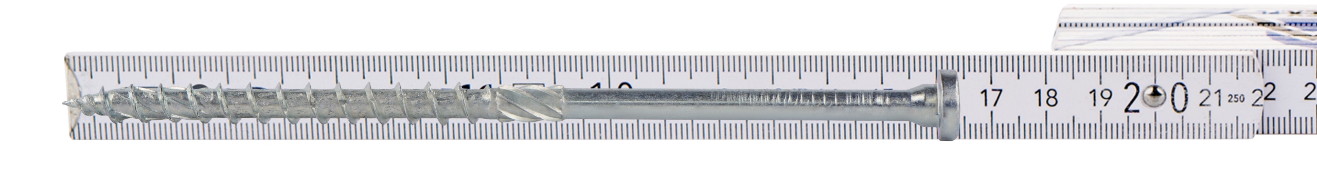 Poszerzona średnica wkręta pod łbem zwiększa wytrzymałość na ścinanie oraz zapewnia idealne dopasowanie do otworów znajdujących się w złączach ciesielskich. Początkowo sfazowana część pod łbem zapewnia bezproblemowe osadzenie wkręta w otworze.