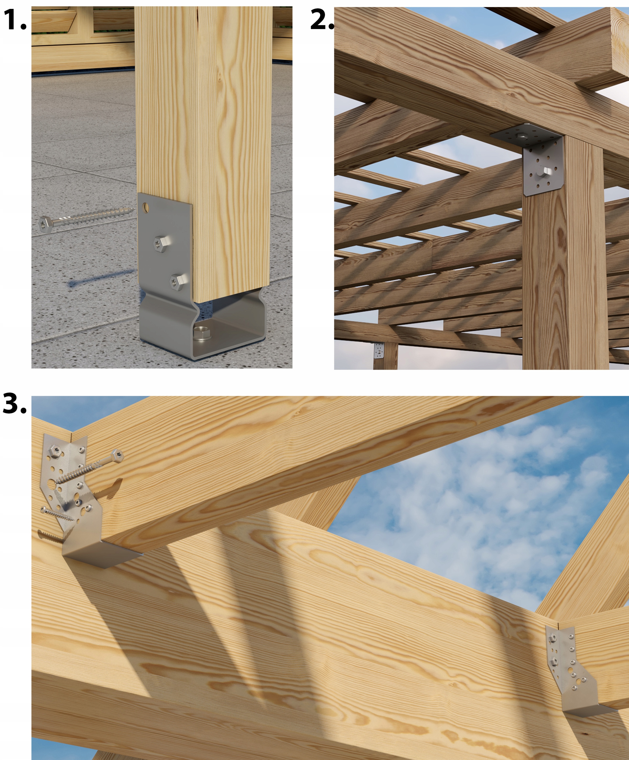 Wkręty wyposażone są w łeb sześciokątny a jego część pod łbem jest, specjalnie zaprojektowany pod otwory o średnicy 8mm, co gwarantuje idealne dopasowanie i stabilność montażu wraz trójwymiarowymi łączniki ciesielskimi.