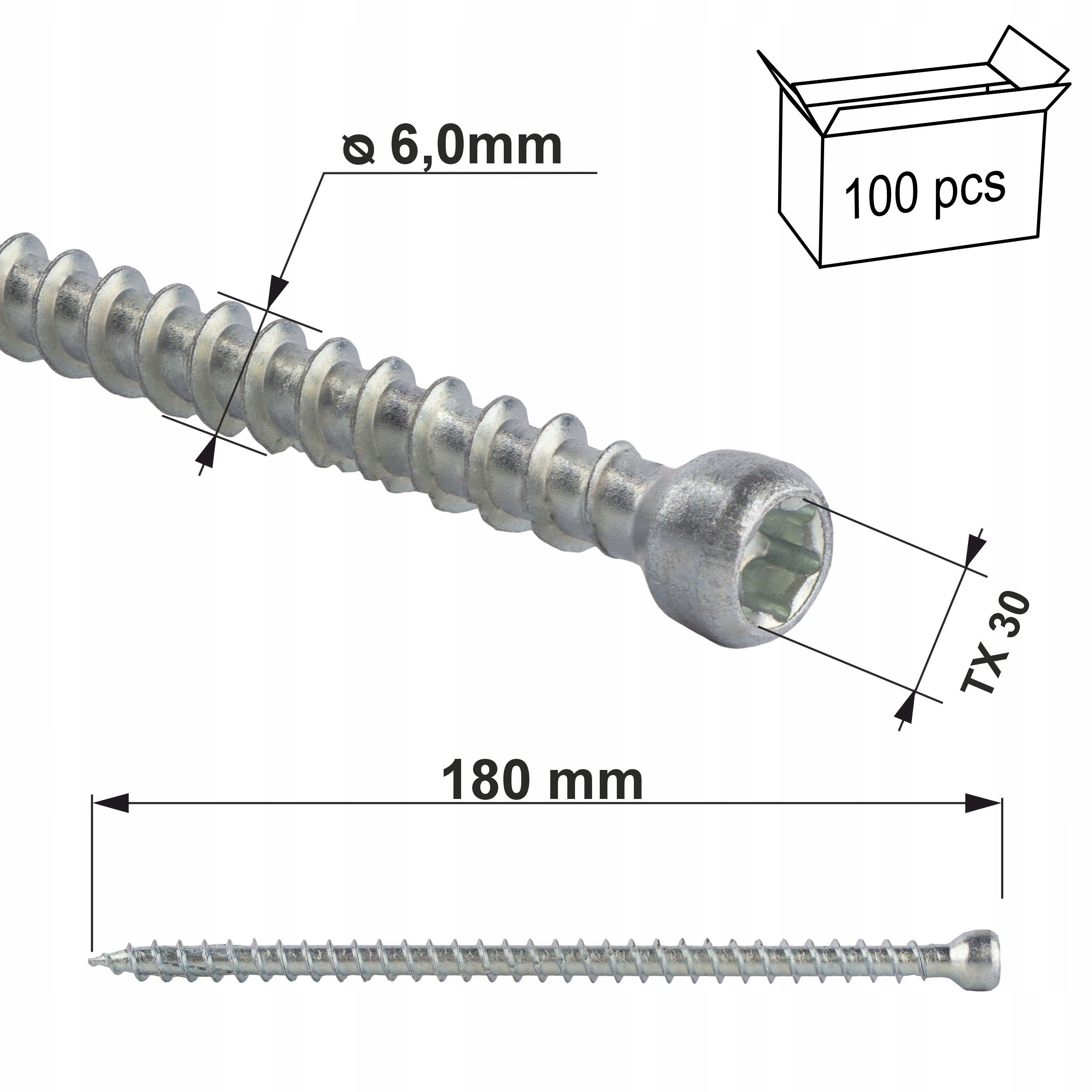 Opinie o Wkręty ciesielskie 6x180 mm 100 szt. torx pełny gwint walcowe Klimas WKFC