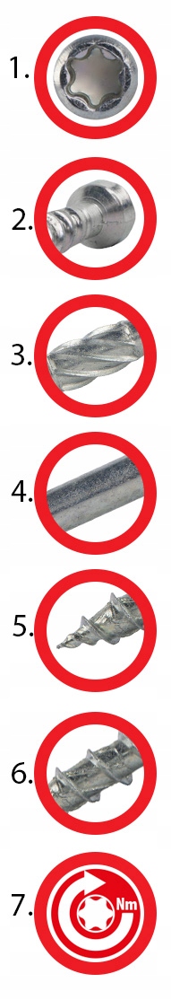 Pozwala na szybkie i niewidoczne zagłębienie wkręta w mocowanym elemencie. Gniazdo TX gwarantuje optymalne przeniesienie momentu obrotowego.