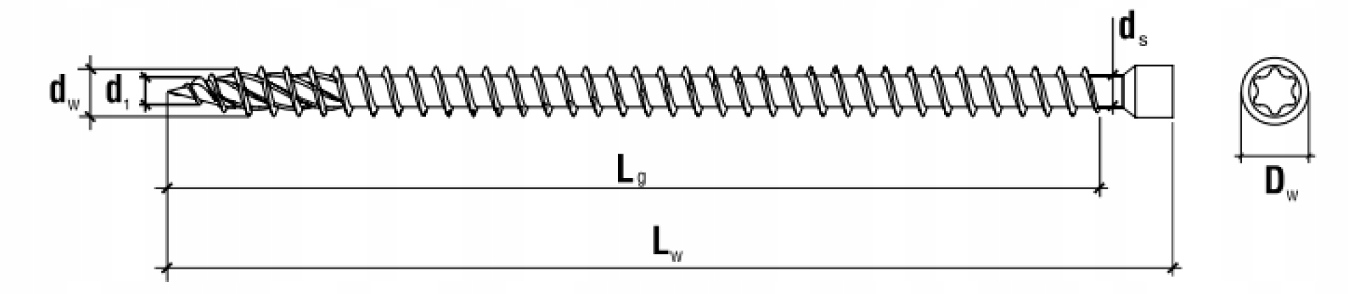 - Wkręty do drewna konstrukcyjne z pełnym gwintem z łbem walcowym i gniazdem Torx
