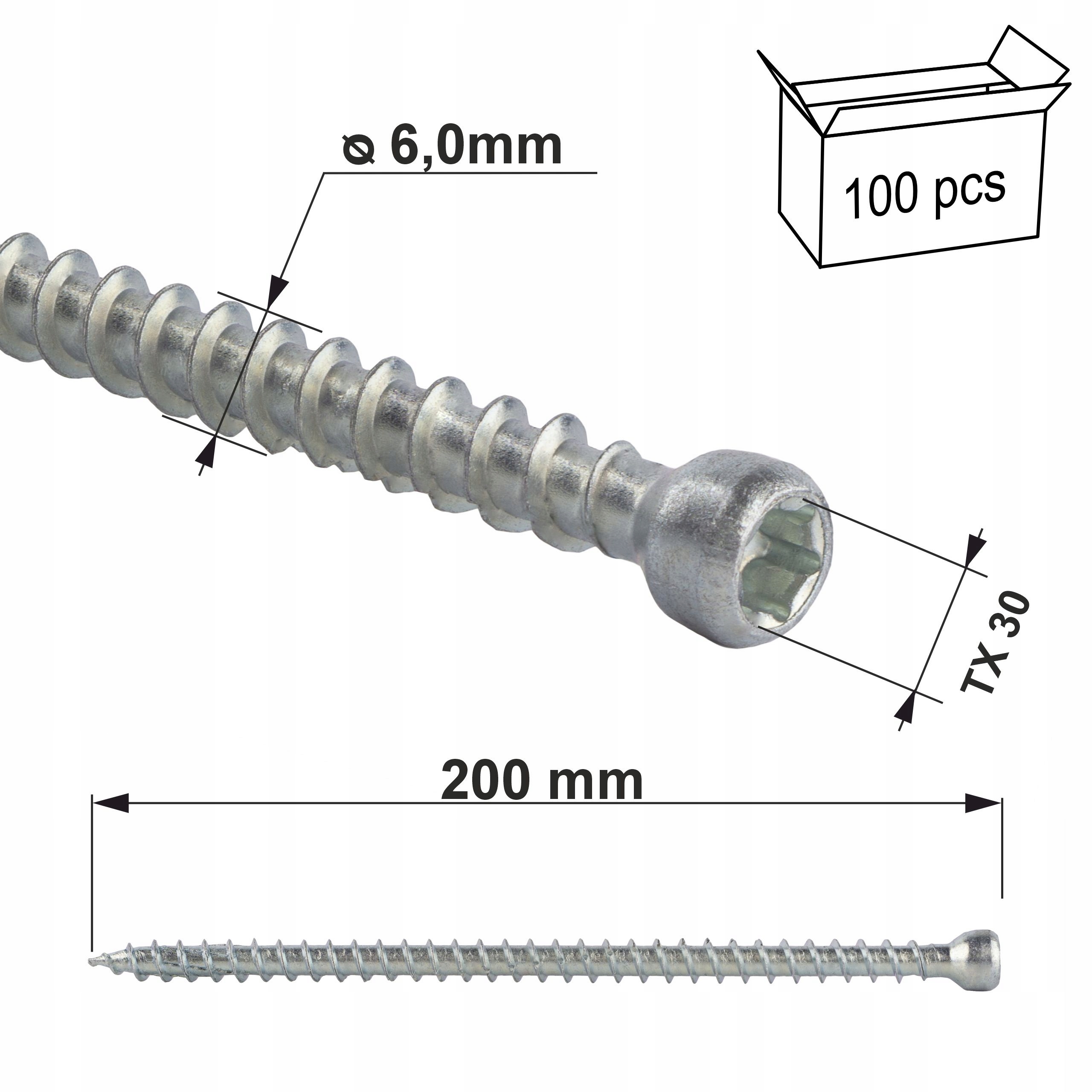 Opinie o Wkręty ciesielskie 6x200 mm 100 szt. torx pełny gwint walcowe Klimas WKFC
