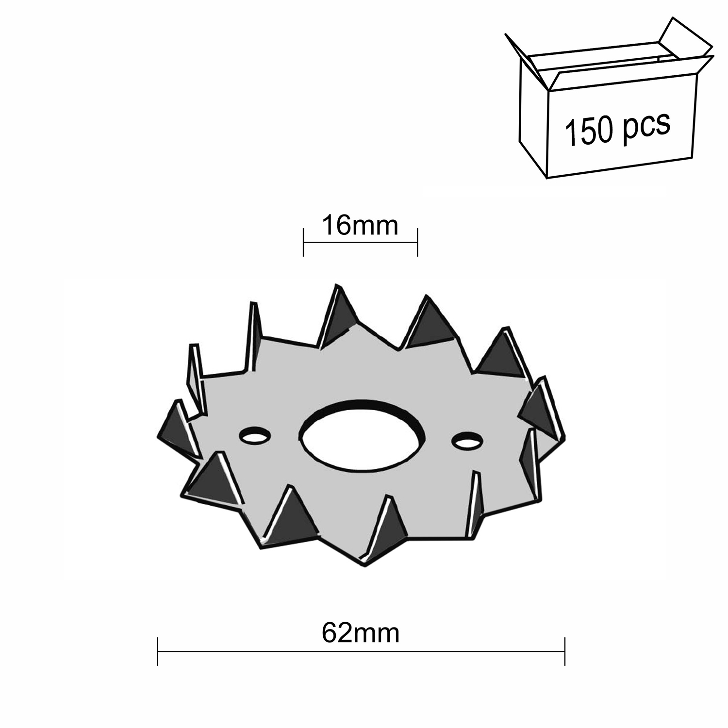 Podkładki kolczaste 62 mm (150 szt.)