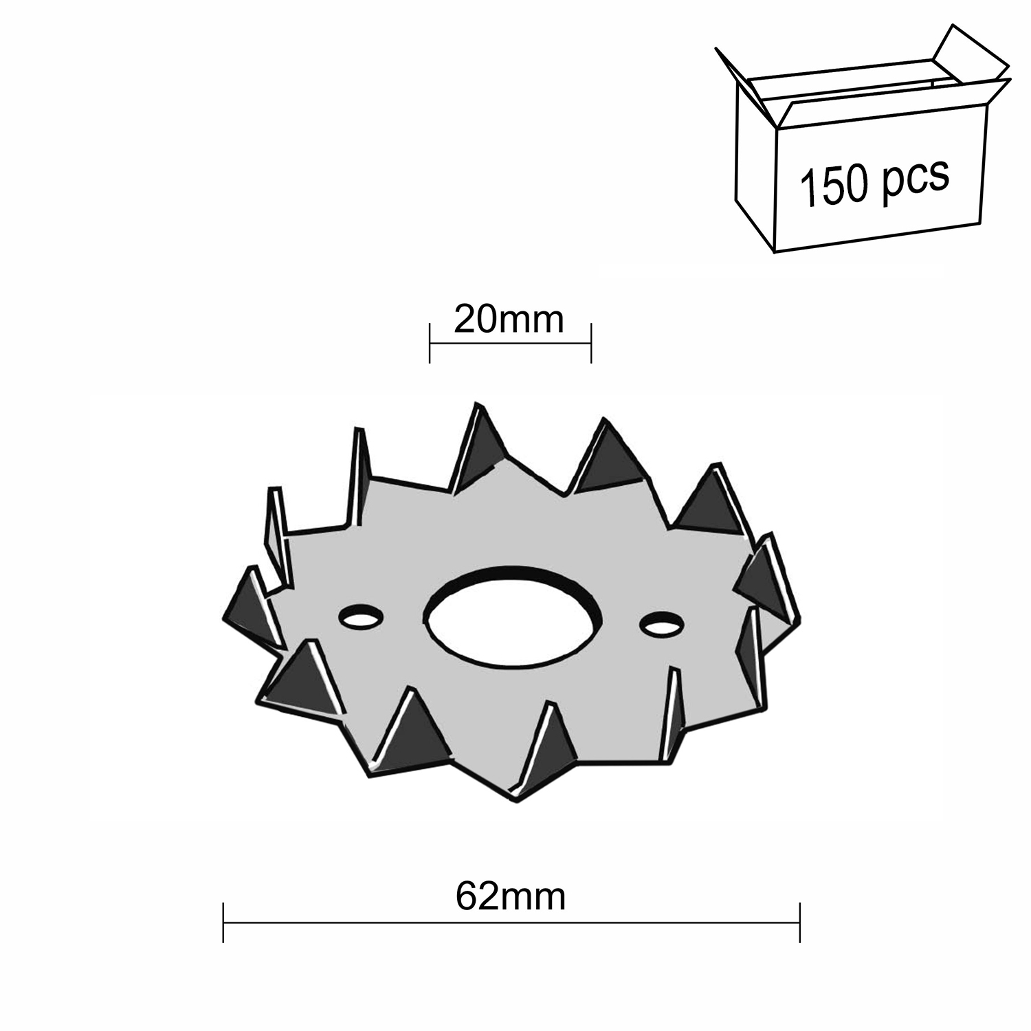 Podkładki kolczaste 62 mm (150 szt.)