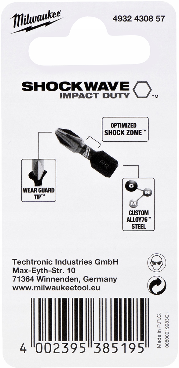 Specjalnie opracowany stop stali ALLOY76™ poddany dodatkowej obróbce termicznej zapewnia maksymalną odporność na uszkodzenia. Bity udarowe SHOCKWAVE™ gwarantują ekstremalną trwałość nawet przy najbardziej wymagających zastosowaniach.