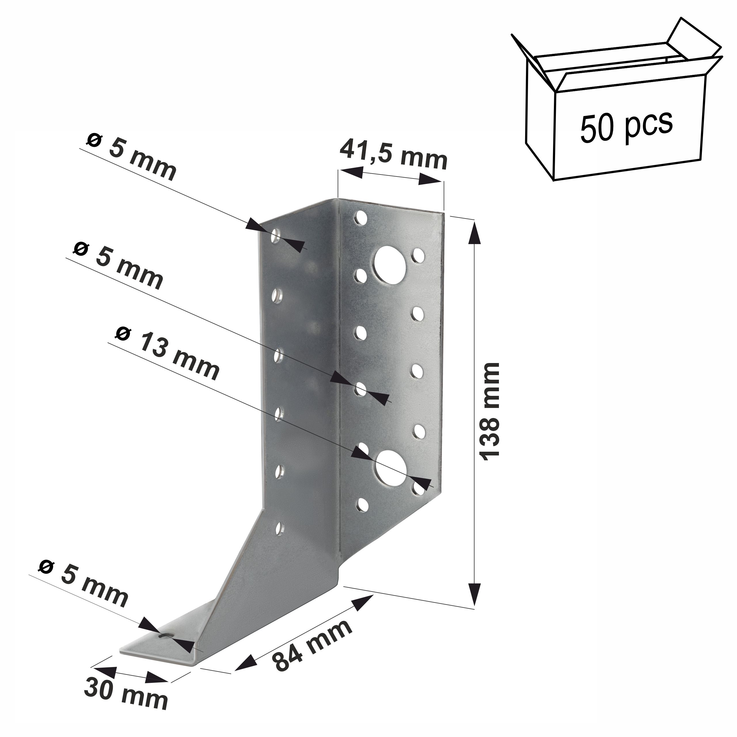 - Otwory belka główna: 150 szt. x Ø 5 mm, 2 szt. x Ø 13 mm