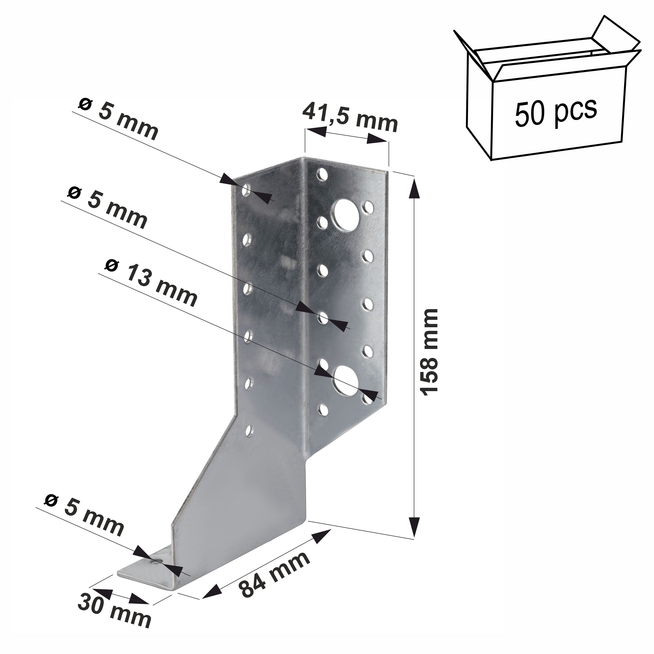 - Otwory belka główna: 150 szt. x Ø 5 mm, 2 szt. x Ø 13 mm