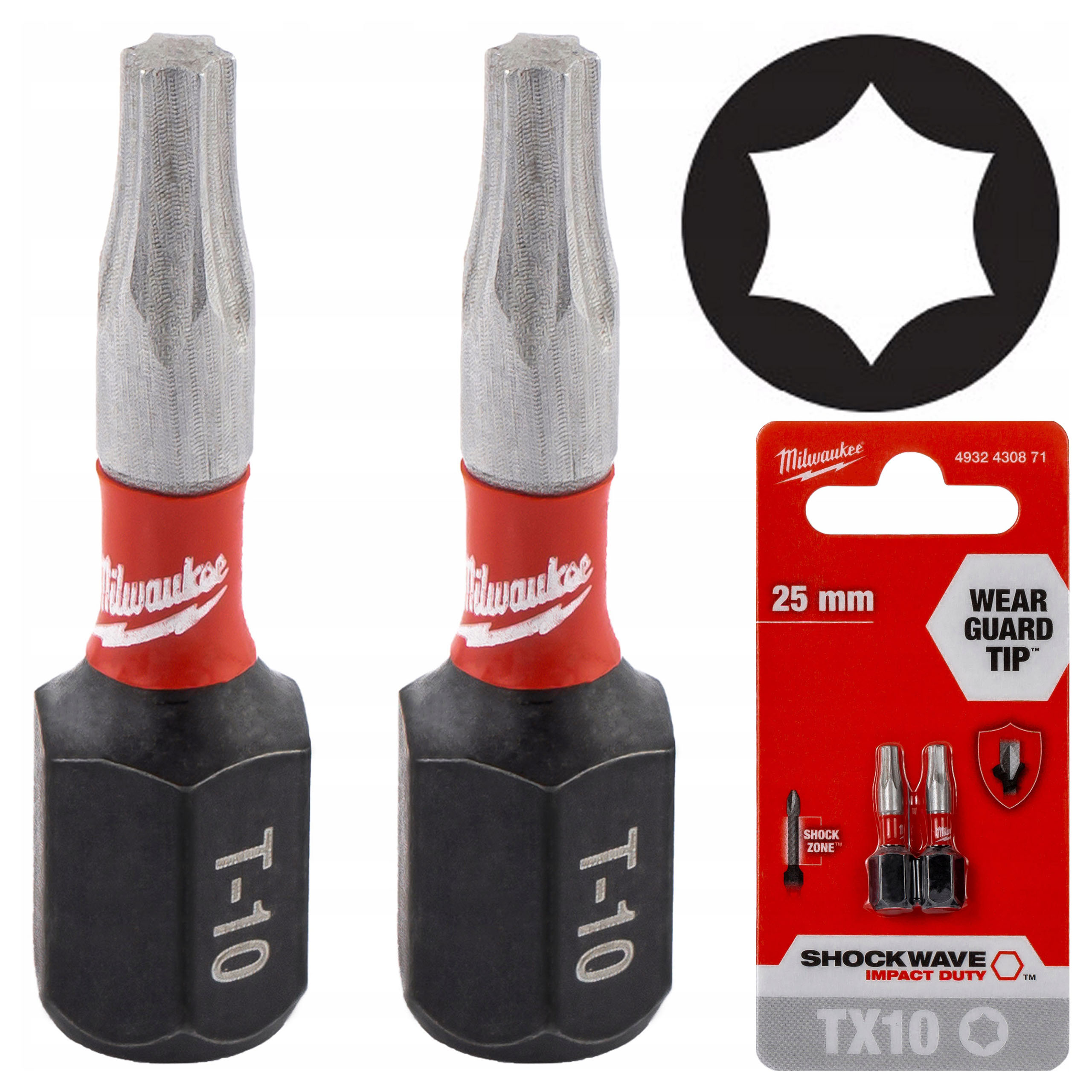 Opinie o Bity udarowe Milwaukee TORX TX10, 25 mm 2 szt. Shockwave