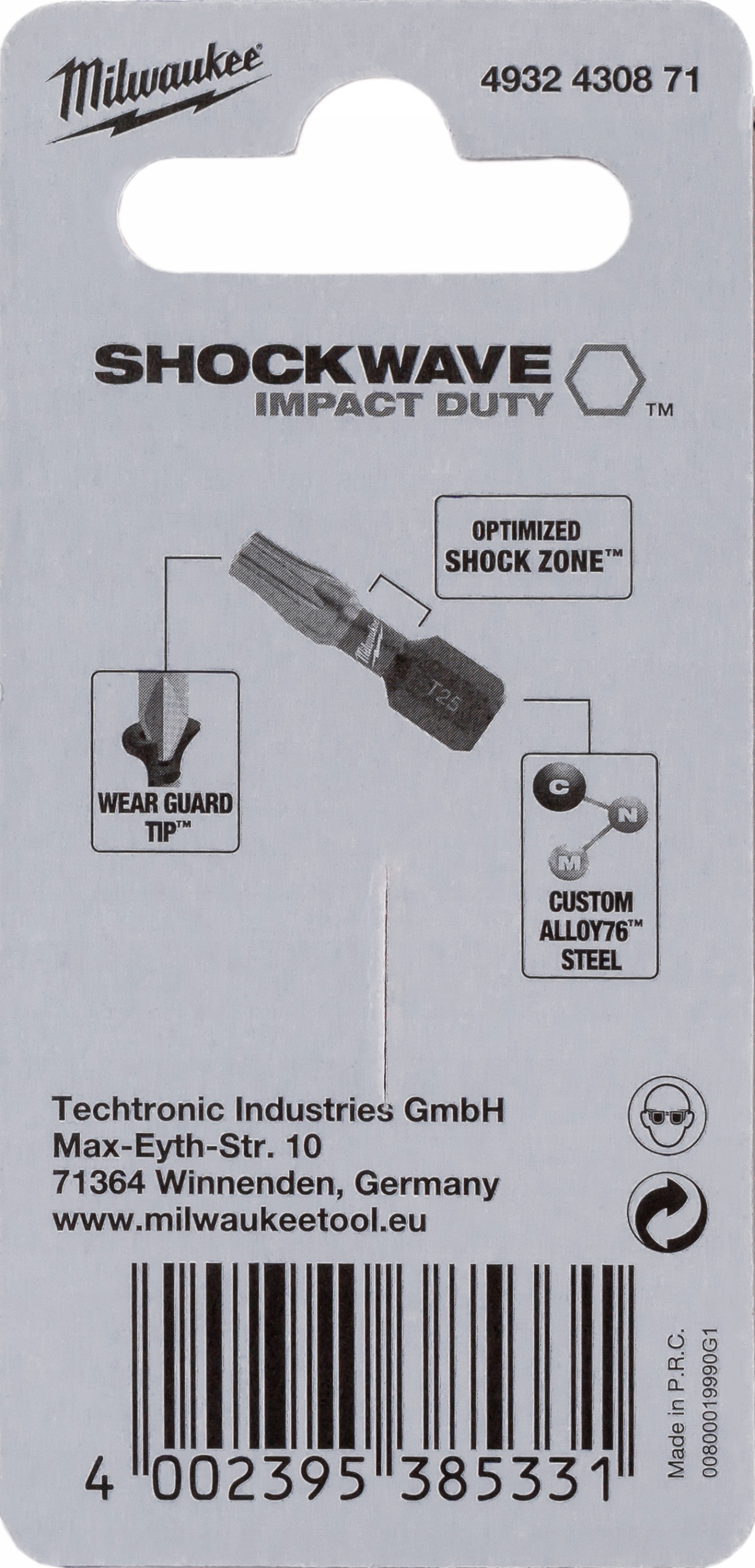 Specjalnie opracowany stop stali ALLOY76™ poddany dodatkowej obróbce termicznej zapewnia maksymalną odporność na uszkodzenia. Bity udarowe SHOCKWAVE™ gwarantują ekstremalną trwałość nawet przy najbardziej wymagających zastosowaniach.