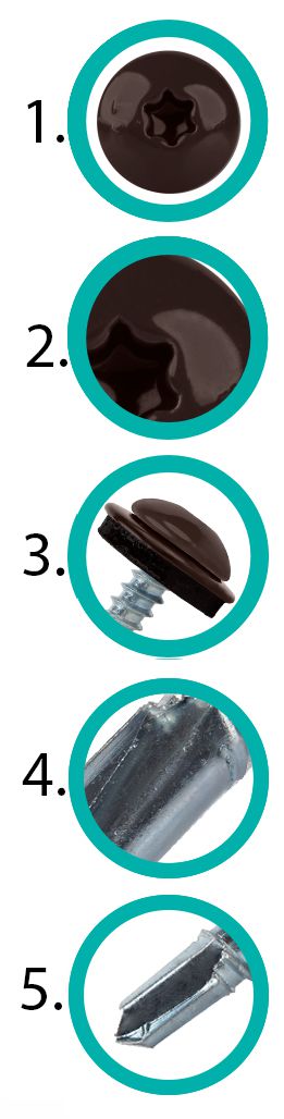 Dodatkowa istotna ochrona antykorozyjna oraz idealne dopasowanie do koloru pokrycia w palecie RAL. Stabilizatory UV zapewniają niezmienność koloru nawet po kilkunastu latach, a nowoczesna technologia proszkowego malowania Powder.coat, zapewnia trwałość powłoki podczas montażu oraz długi okres eksploatacji.