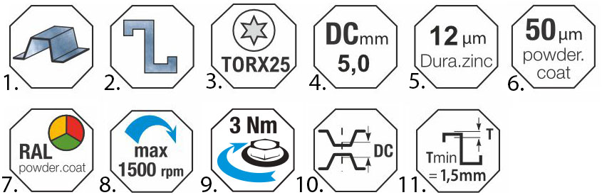 - Przeznaczone do mocowania profilowanych blach stalowych konstrukcyjnych do konstrukcji stalowych (o grubości do 5 mm) oraz do łączenia ze