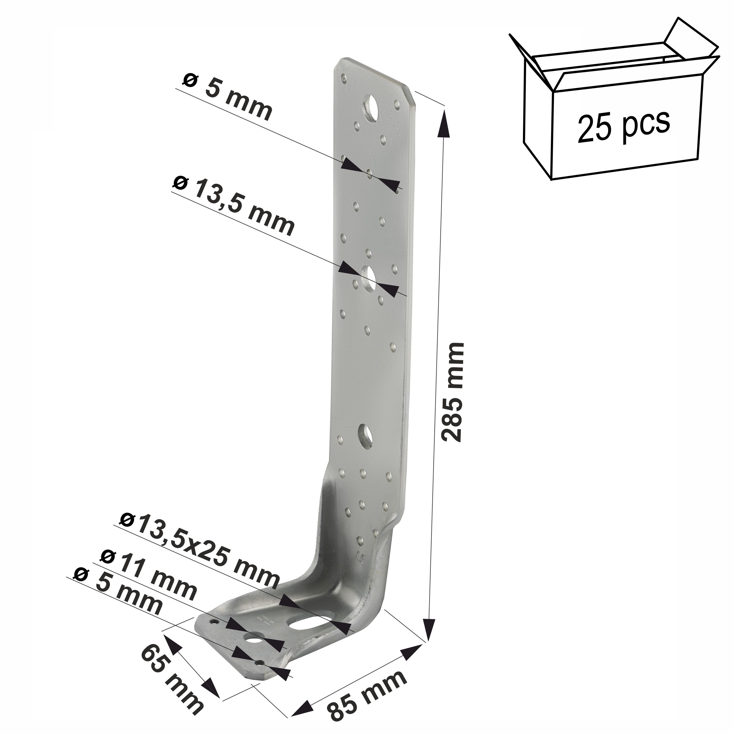 Dzięki wykorzystaniu stali wysokiej jakości (Stal S235JR) oraz procesowi cynkowania zanurzeniowego (Hot Dip Galvanizing), złącze zapewnia wyjątkową wytrzymałość i długotrwałość połączeń w różnorodnych konstrukcjach drewnianych.