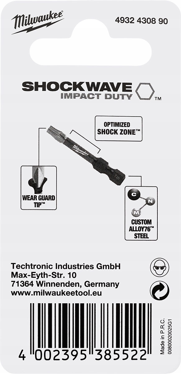 Specjalnie opracowany stop stali ALLOY76™ poddany dodatkowej obróbce termicznej zapewnia maksymalną odporność na uszkodzenia. Bity udarowe SHOCKWAVE™ gwarantują ekstremalną trwałość nawet przy najbardziej wymagających zastosowaniach.