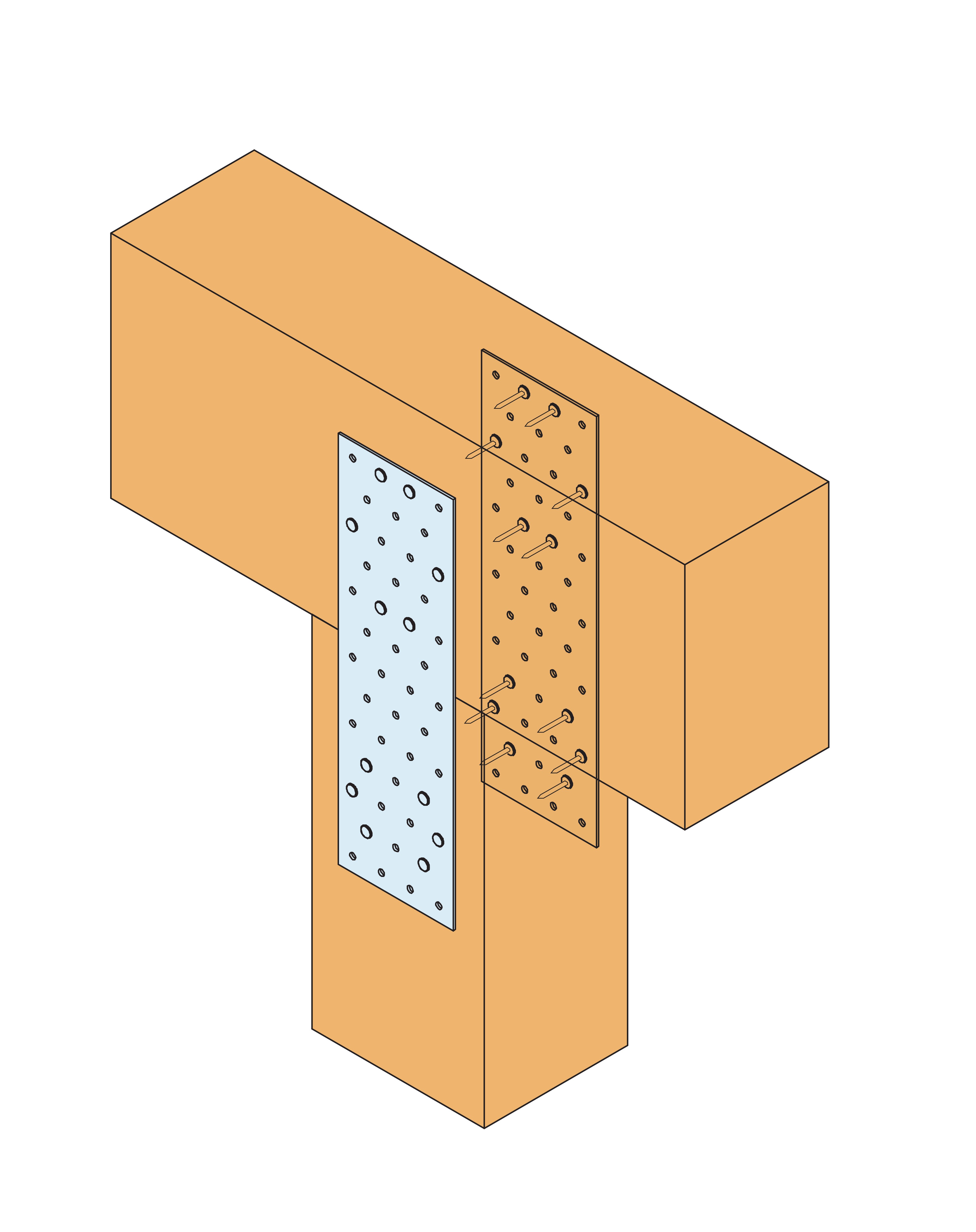 Płytki perforowane NP posiadają wiele zastosowań w zakresie prostego wykonywania połączeń nakładkowych. Z uwagi na unikanie mimośrodów zaleca się stosowanie płytek parami, łączonymi obustronnie do elementów drewnianych.