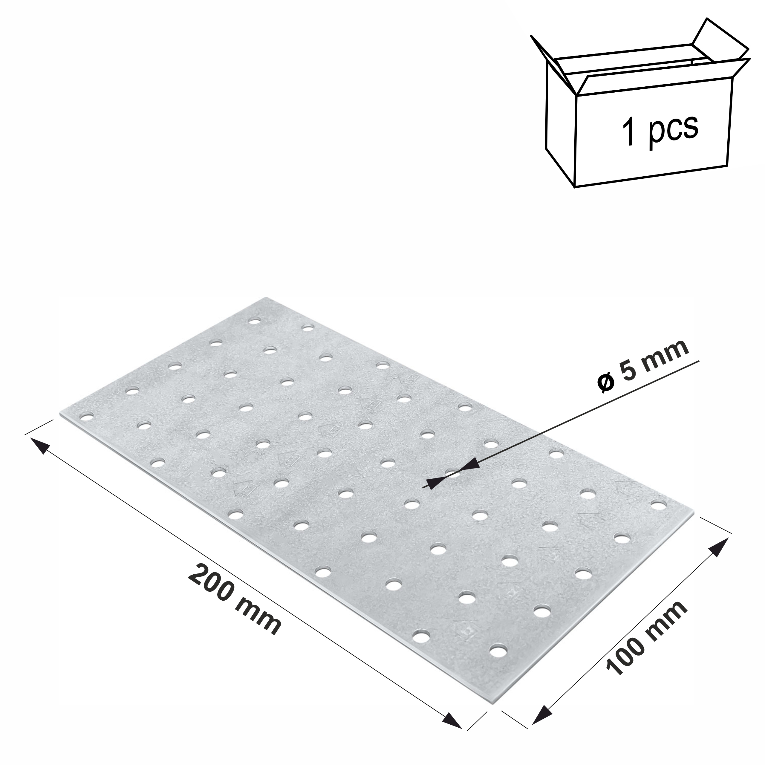 Płytka perforowana 100x200 x 2mm 1 szt. Łącznik ciesielski płaski PP12