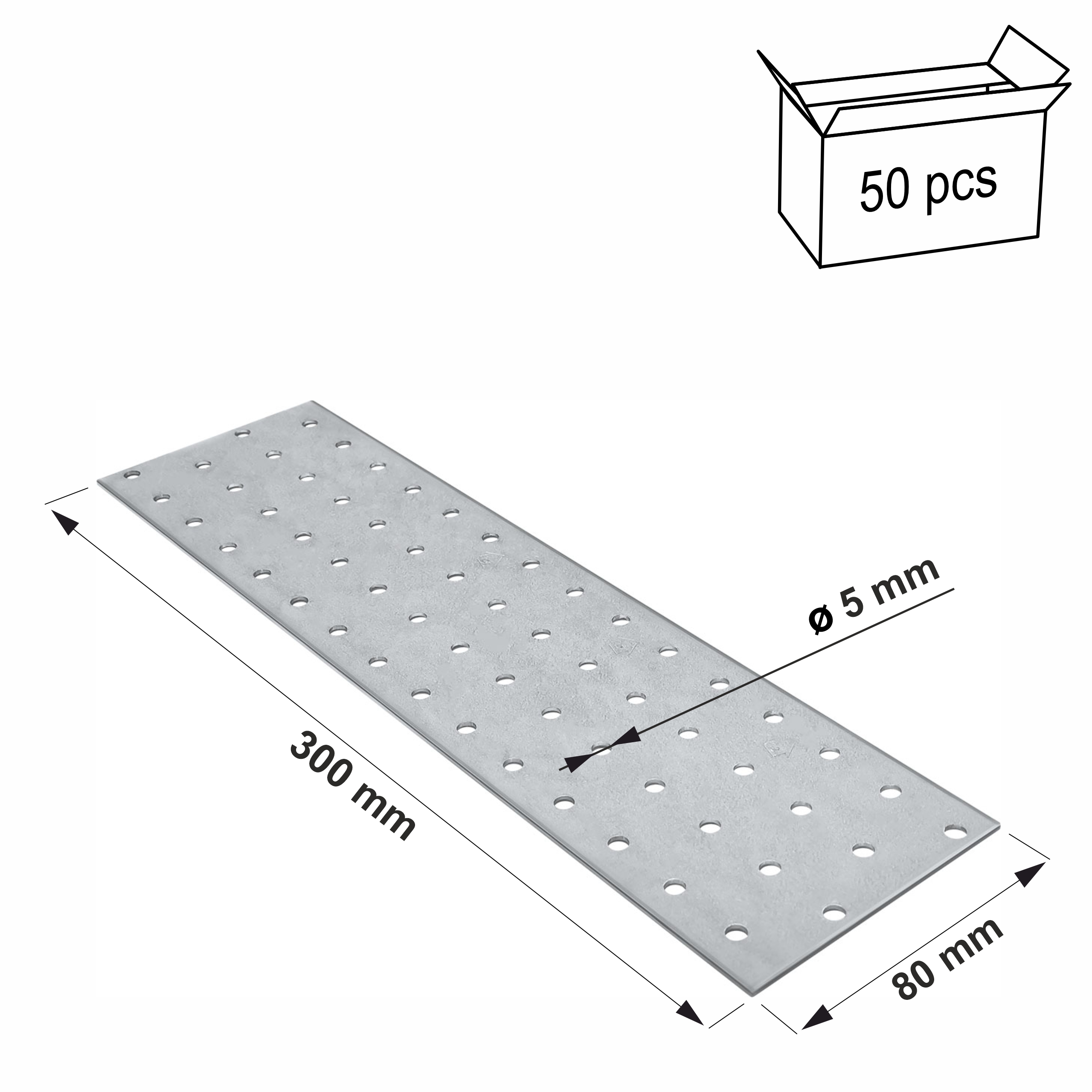 Płytki perforowane 80x300 x 2mm 50 szt. Łączniki ciesielskie płaskie PP11