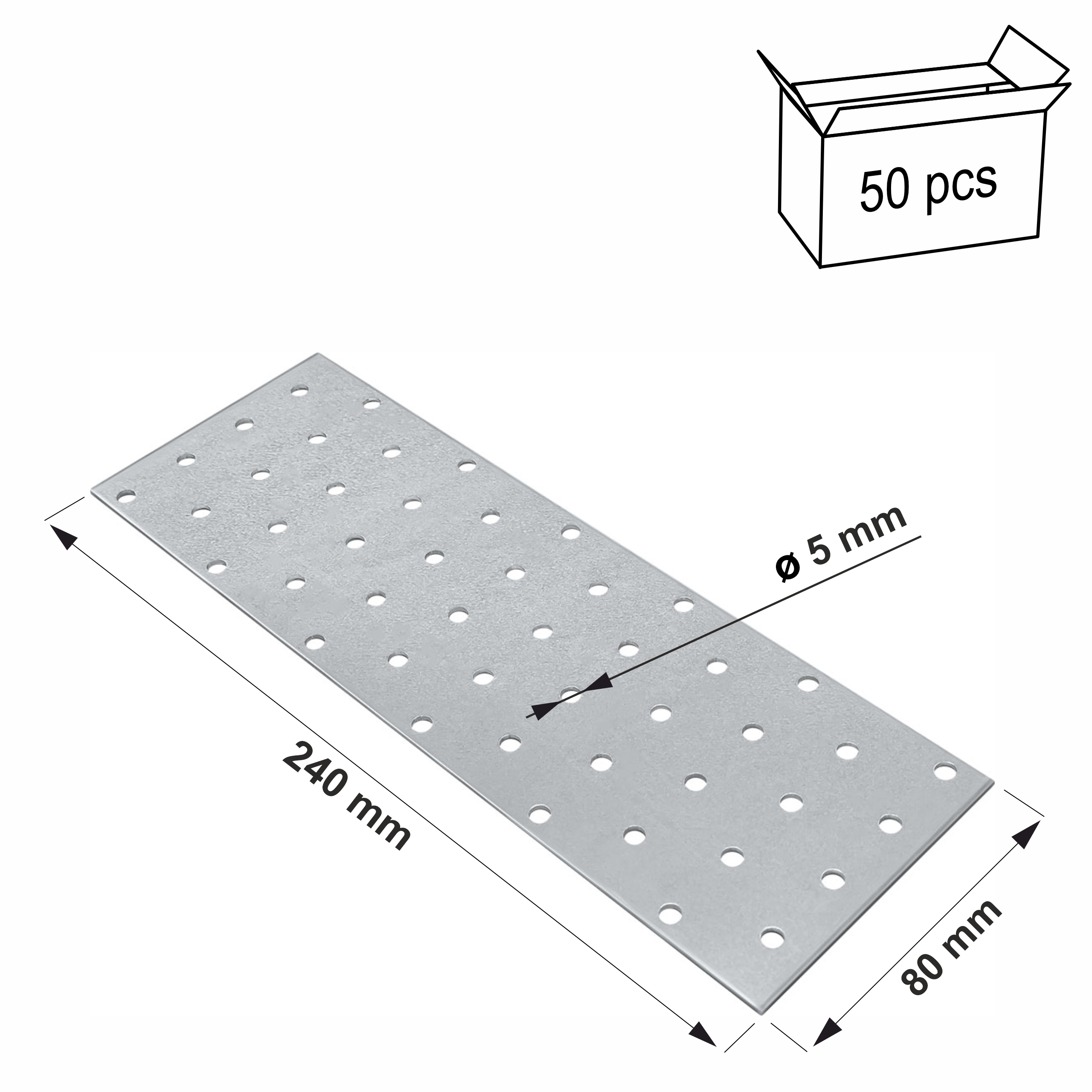 Płytki perforowane 80x240 x 2mm 50 szt. Łączniki ciesielskie płaskie PP10
