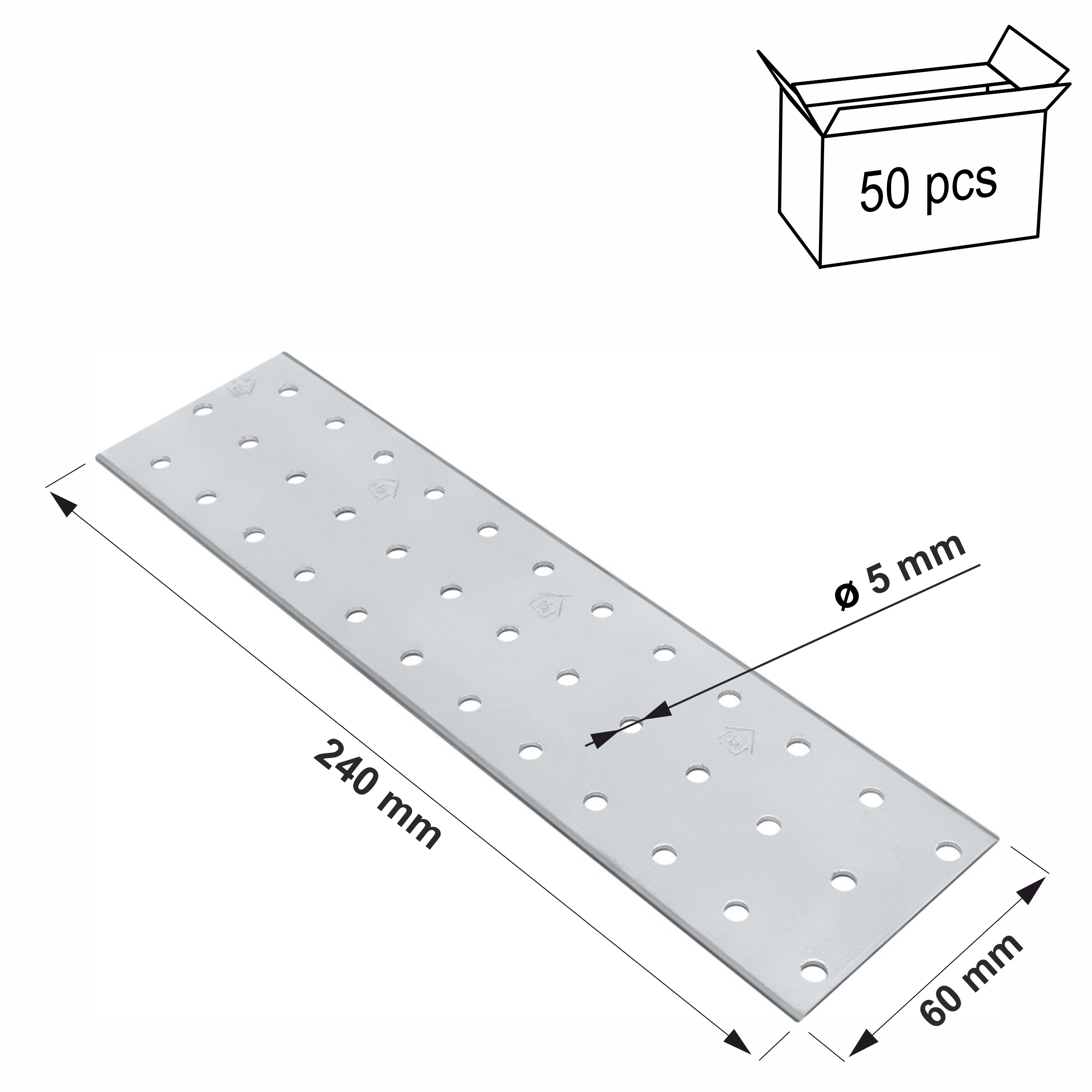 Płytki perforowane 60x240 x 2mm 50 szt. Łączniki ciesielskie płaskie PP8