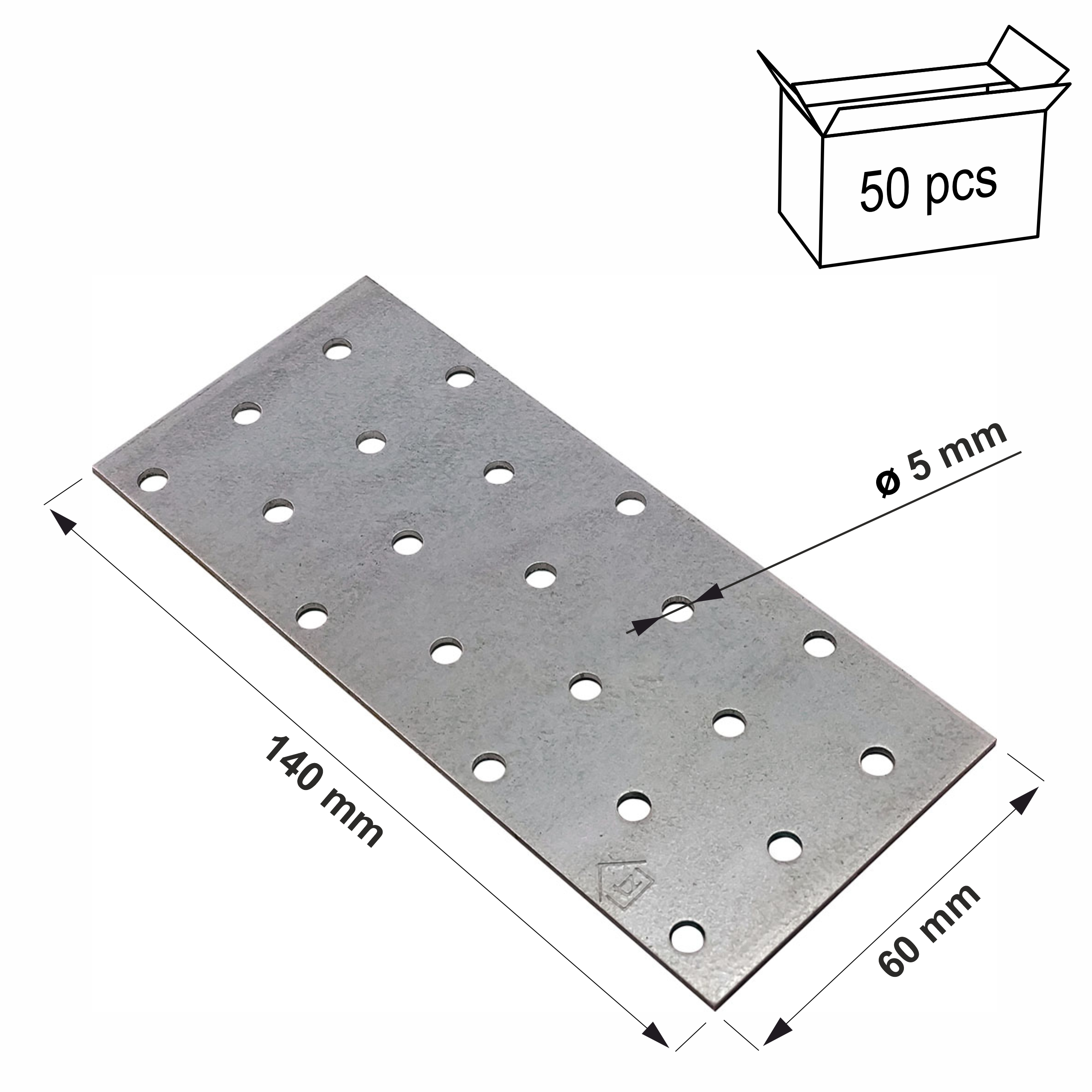 Płytki perforowane 60x140 x 2mm 50 szt. Łączniki ciesielskie płaskie PP5