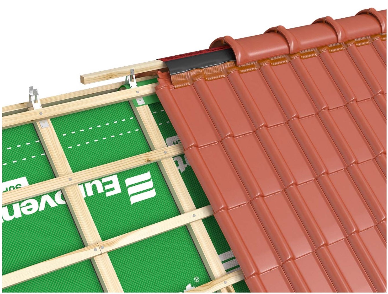 Wspornik łaty kalenicowej Eurovent® WSPORNIK B znajduje zastosowanie jako element mocujący, oraz poziomujący łatę kalenicową, na której mocowane są gąsiory kalenicowe.