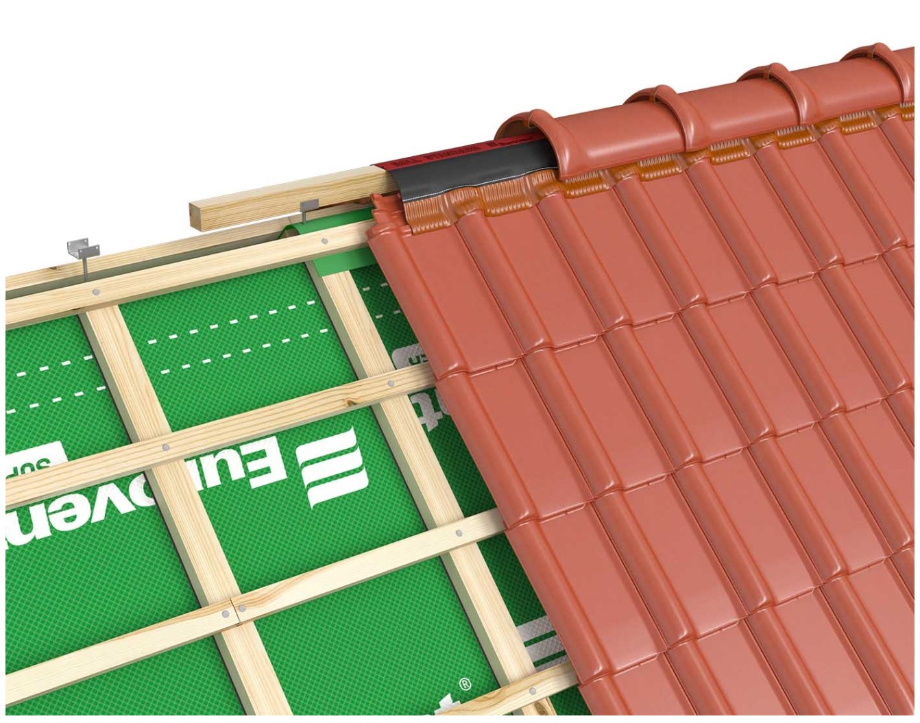 Wspornik łaty kalenicowej Eurovent® WSPORNIK N znajduje zastosowanie jako element mocujący, oraz poziomujący łatę kalenicową, na której mocowane są gąsiory kalenicowe.