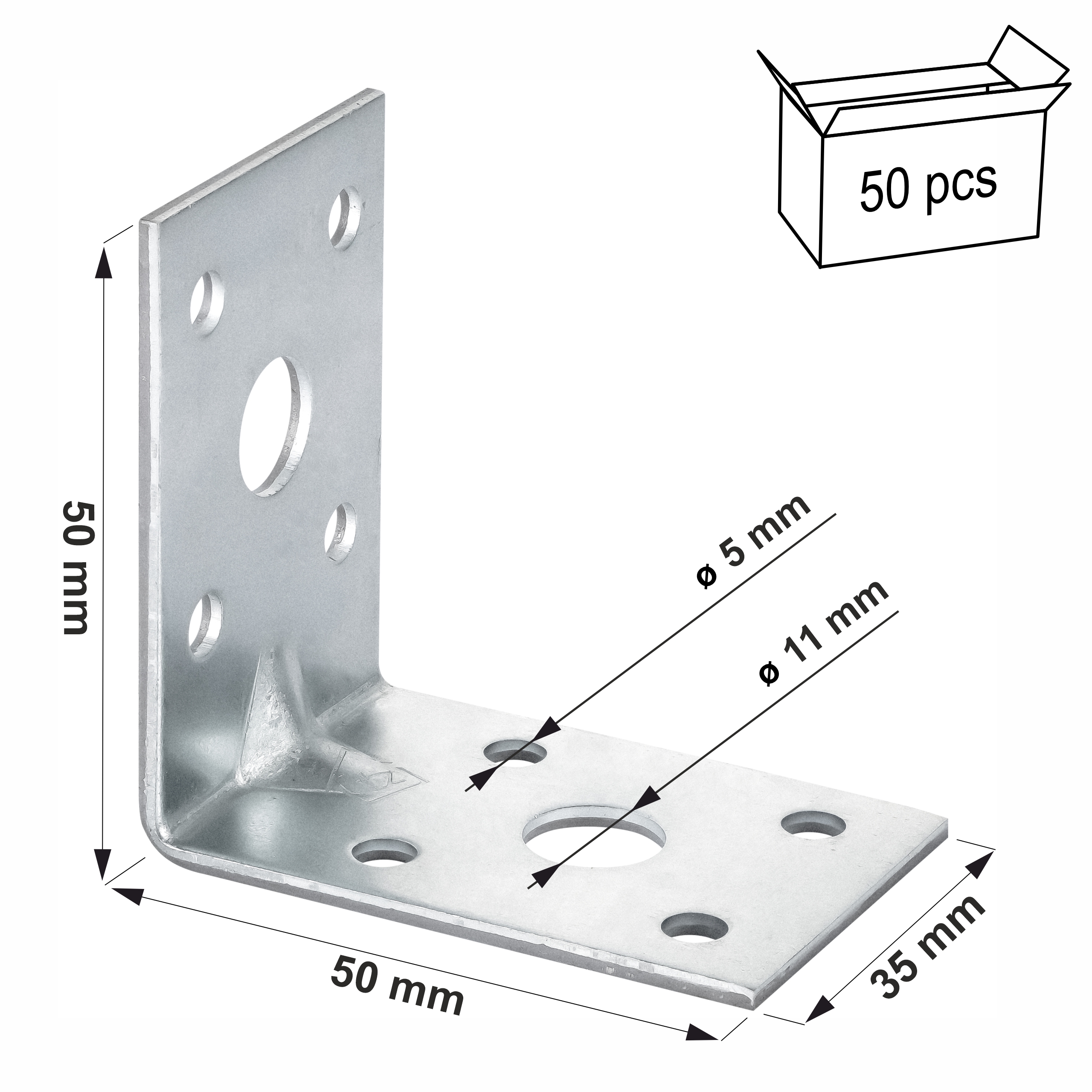 Opinie o Kątowniki ciesielskie stalowe 50x50x35 x 2mm 50 szt. perforowane wzmoc KP8