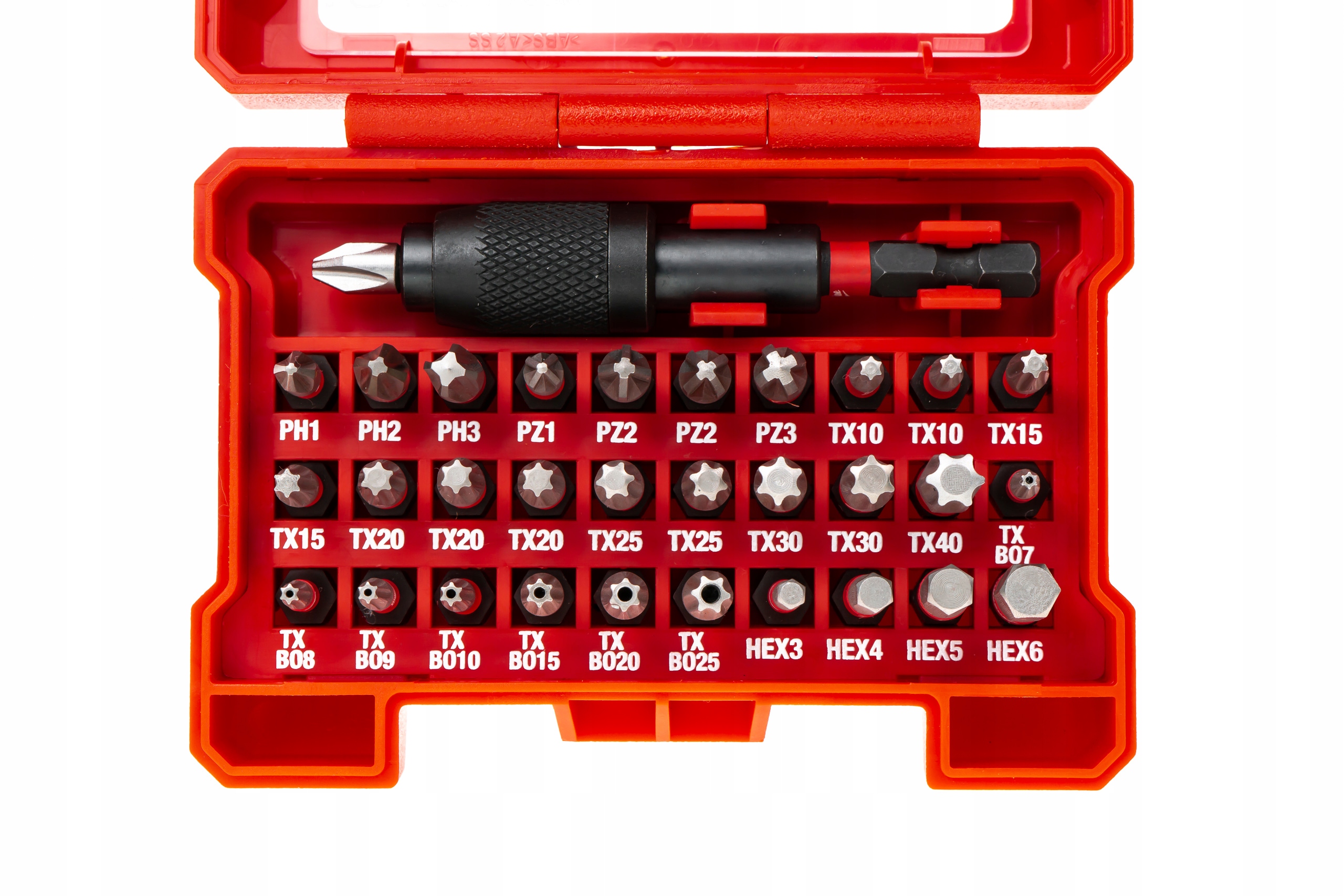 - Rozmiar: PH1 - PH3, PZ1 - PZ3, T10 - T40, T BO7 - T BO25, Hex 3 - 6 mm