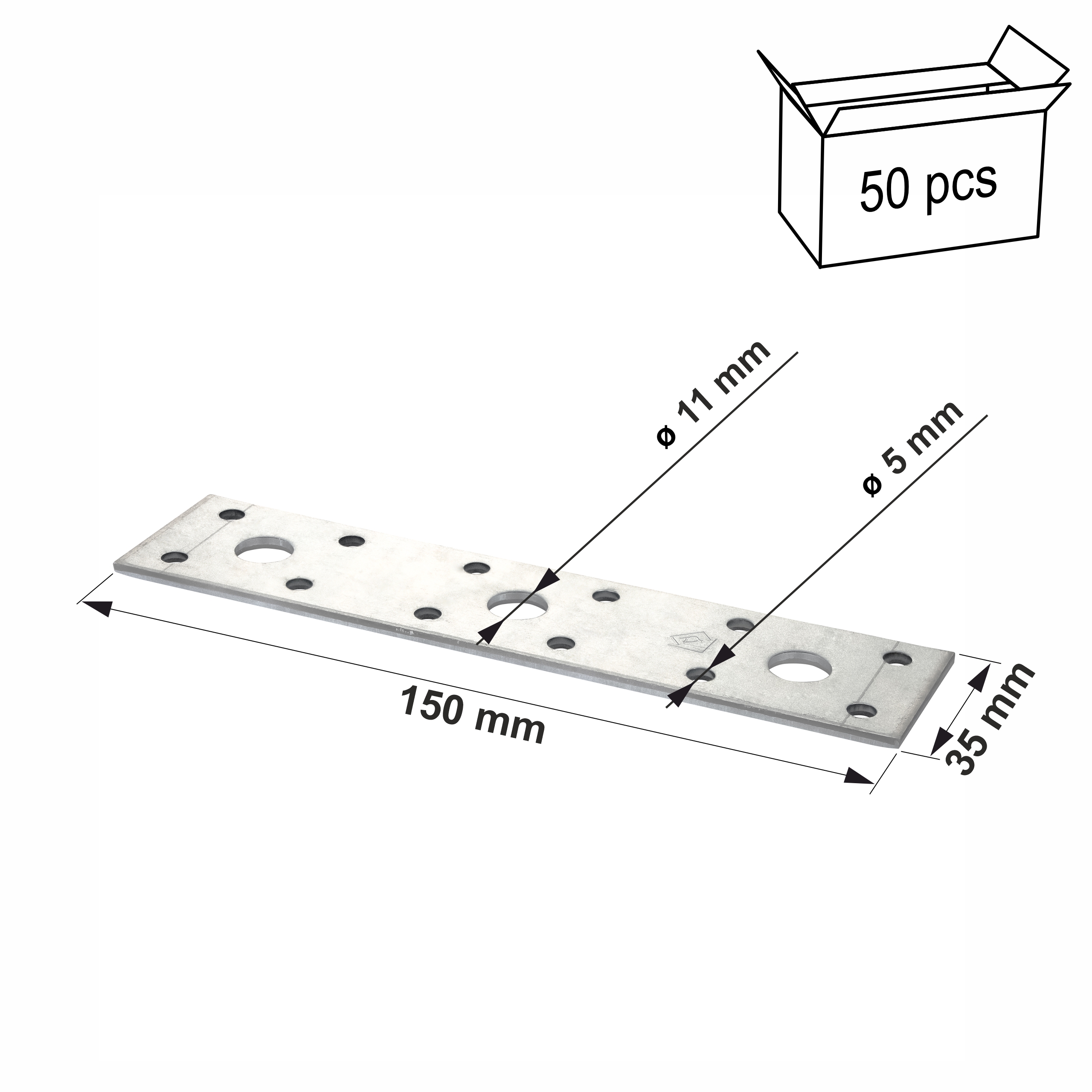 Łączniki ciesielskie płaskie 150x35 x 2,5mm 50 szt. Płytki perforowane ŁP7