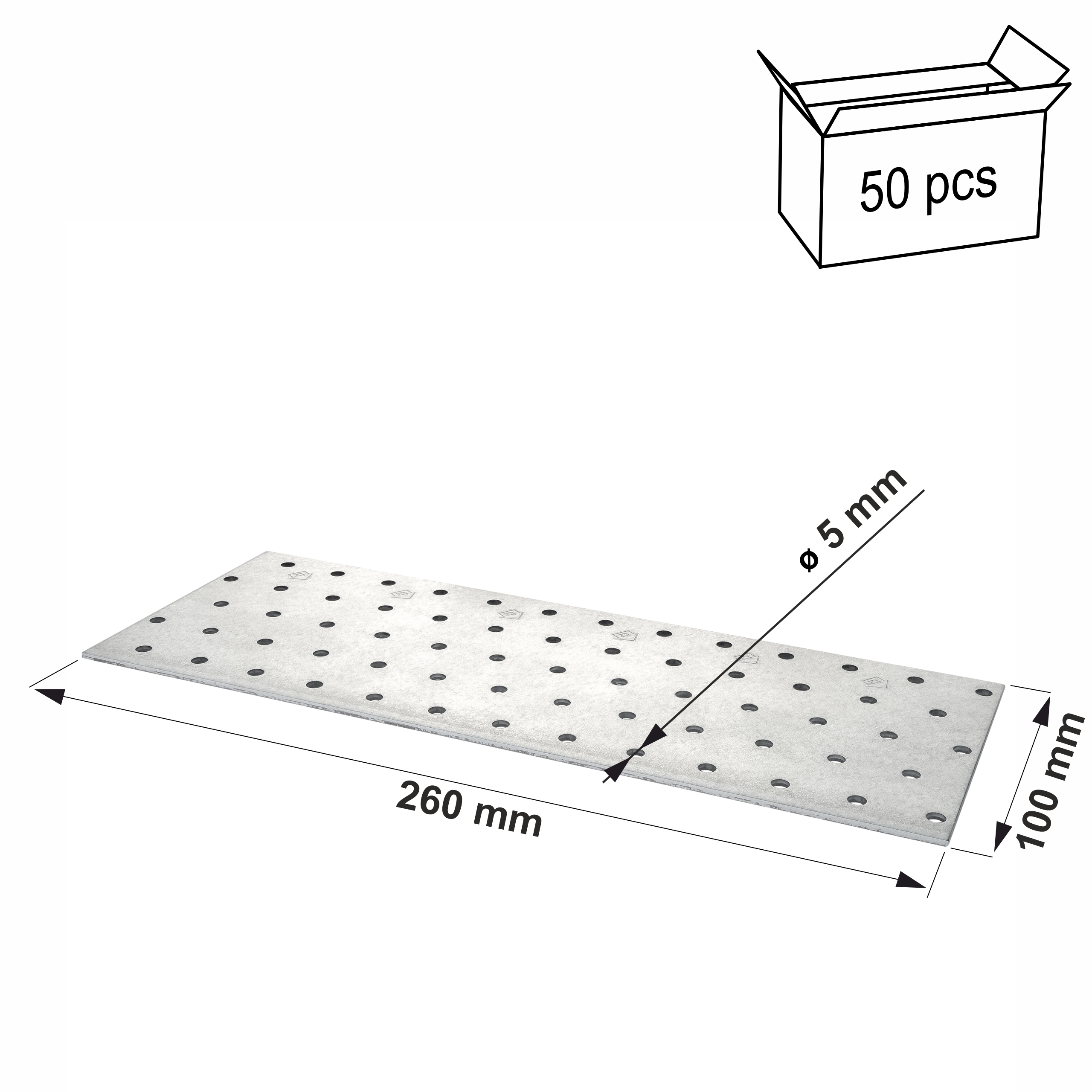 Płytki perforowane 100x260 x 2mm 50 szt. Łączniki ciesielskie płaskie PP14