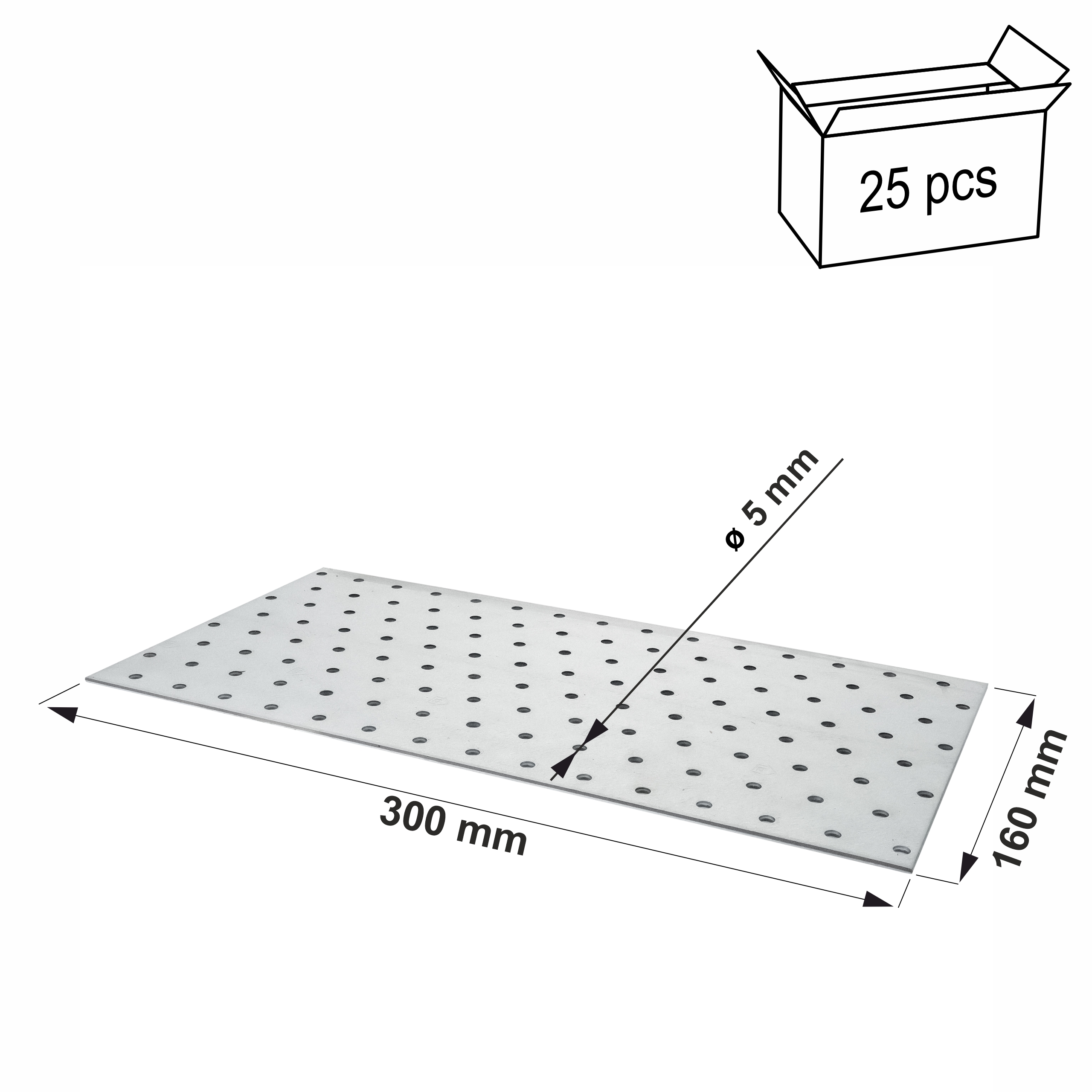 Płytki perforowane 160x300 x 2mm 25 szt. Łączniki ciesielskie płaskie PP53
