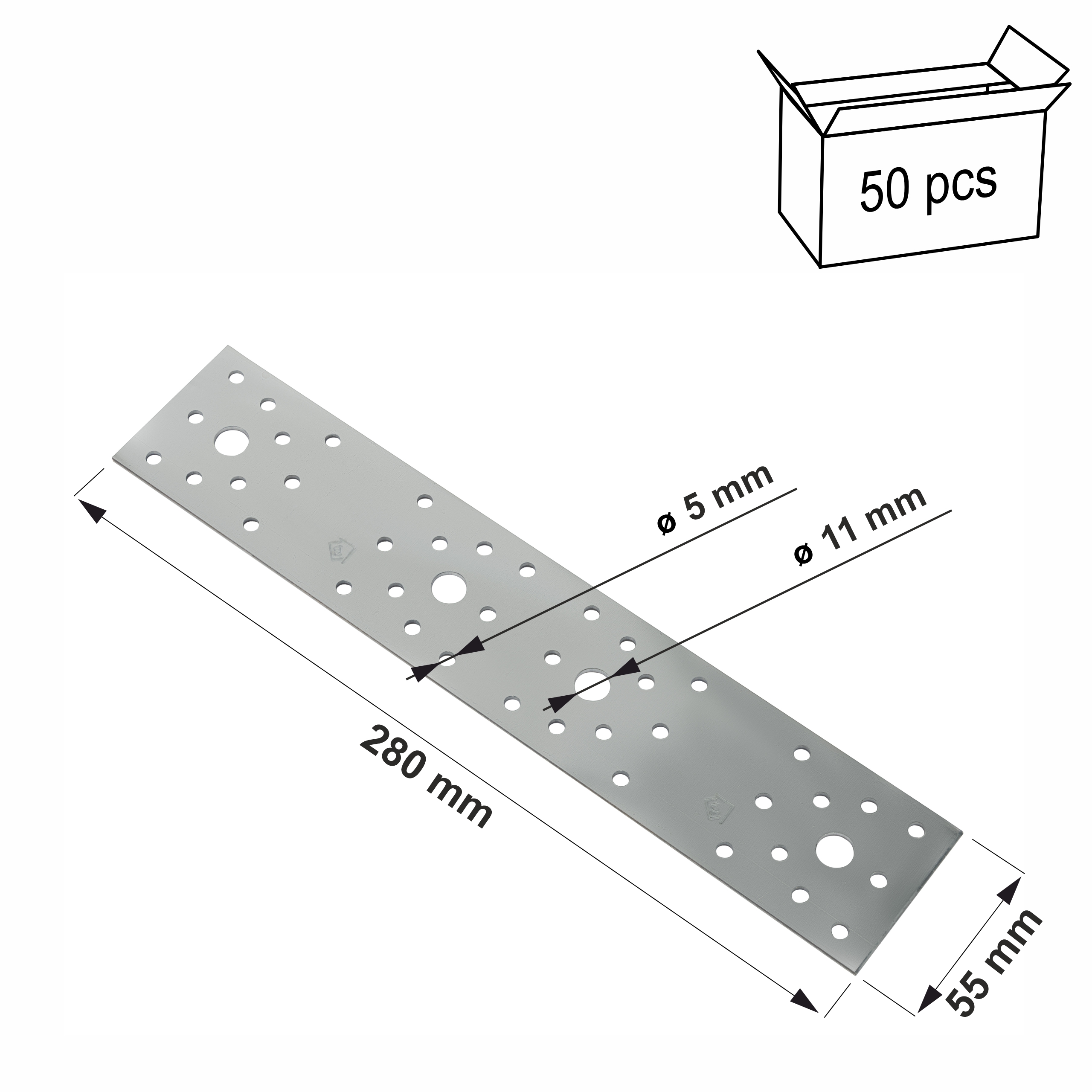 Łączniki ciesielskie płaskie 280x55 x 2,5mm 50 szt. Płytki perforowane ŁP4