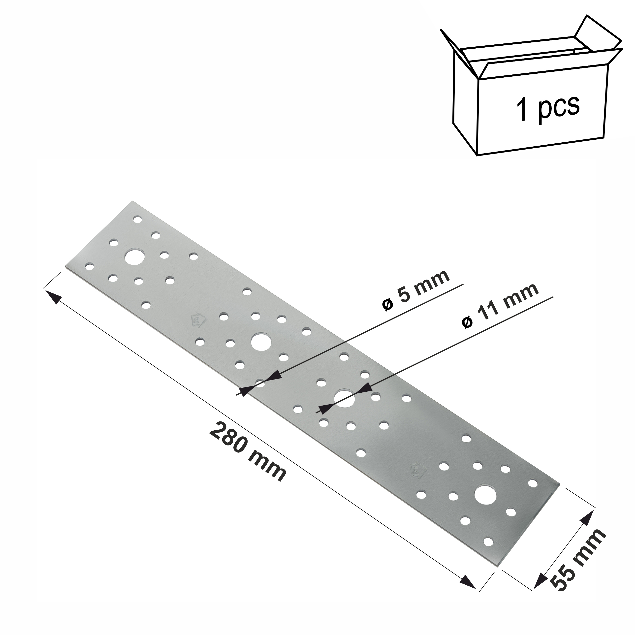 Łącznik ciesielski płaski 280x55 x 2,5mm 1 szt. Płytka perforowana ŁP4