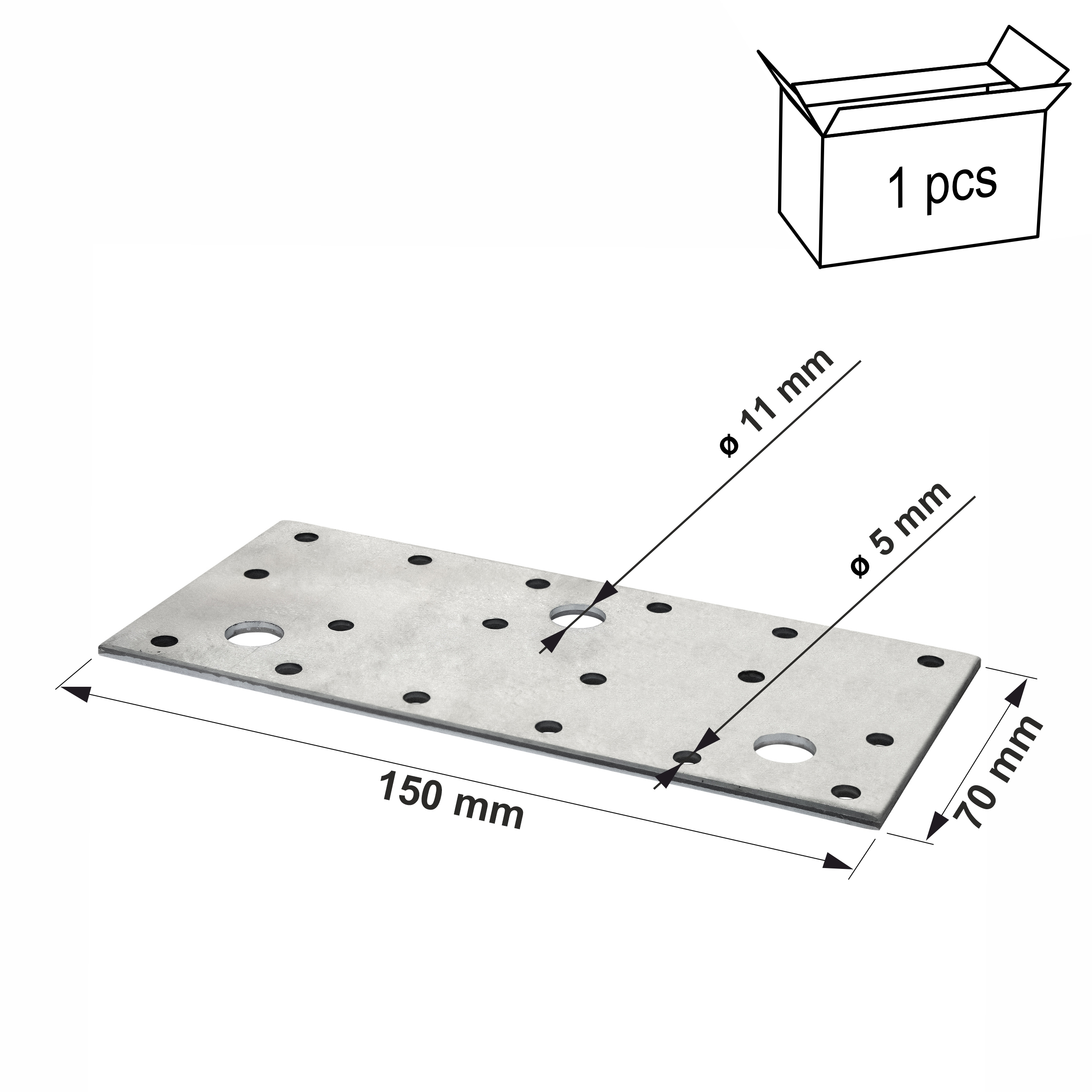 Łączniki ciesielskie płaskie 150x70 x 2,5mm 1 szt. Płytki perforowane ŁP9