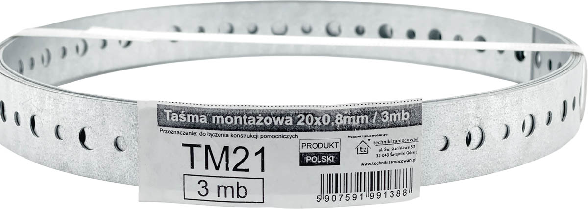 Taśma perforowana montażowa 20 x 0,8mm x 3mb 1 szt. stalowa TM21