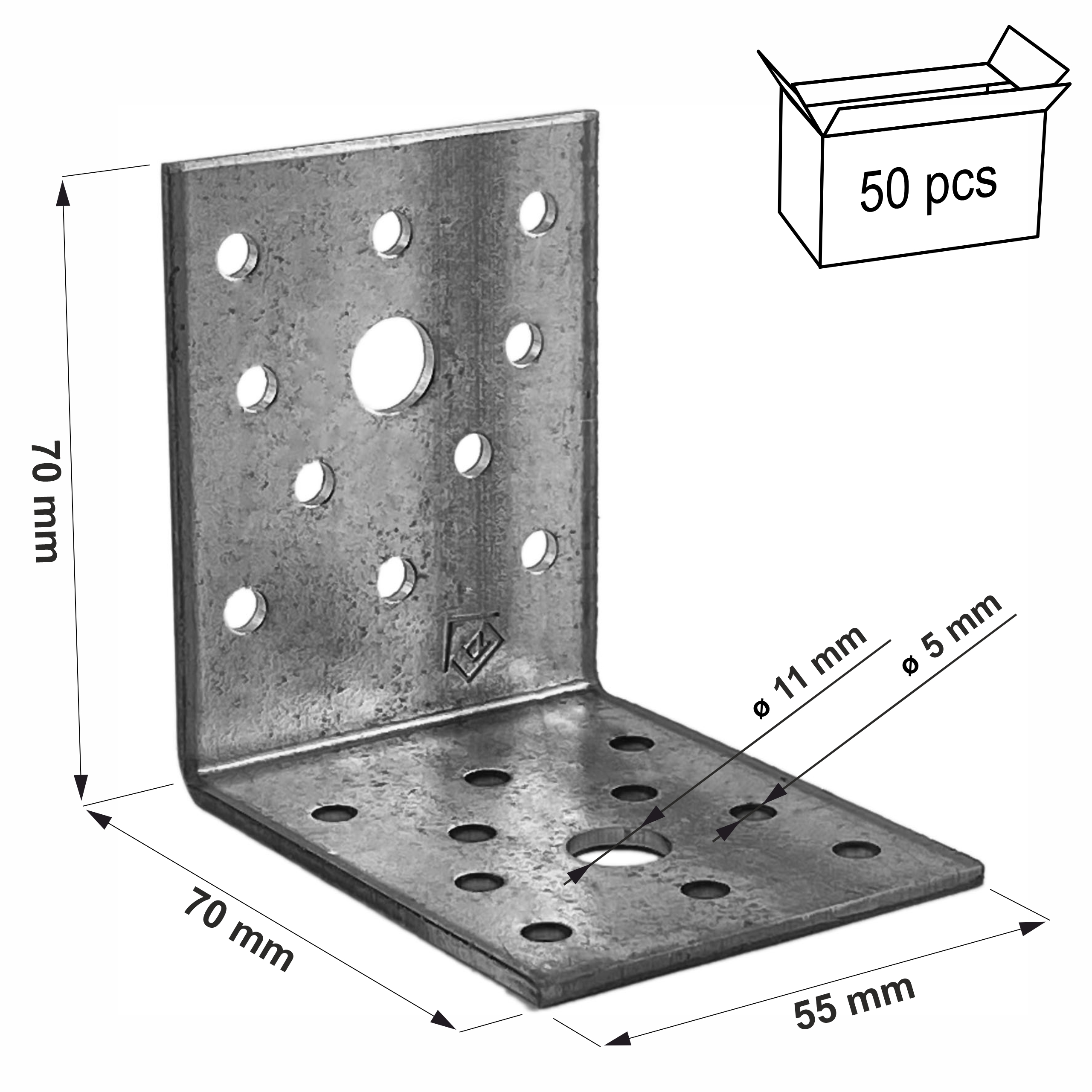 Opinie o Kątowniki stalowe perforowane 70x70x55 x 2,5mm 50 szt. łącznikowe KŁ2