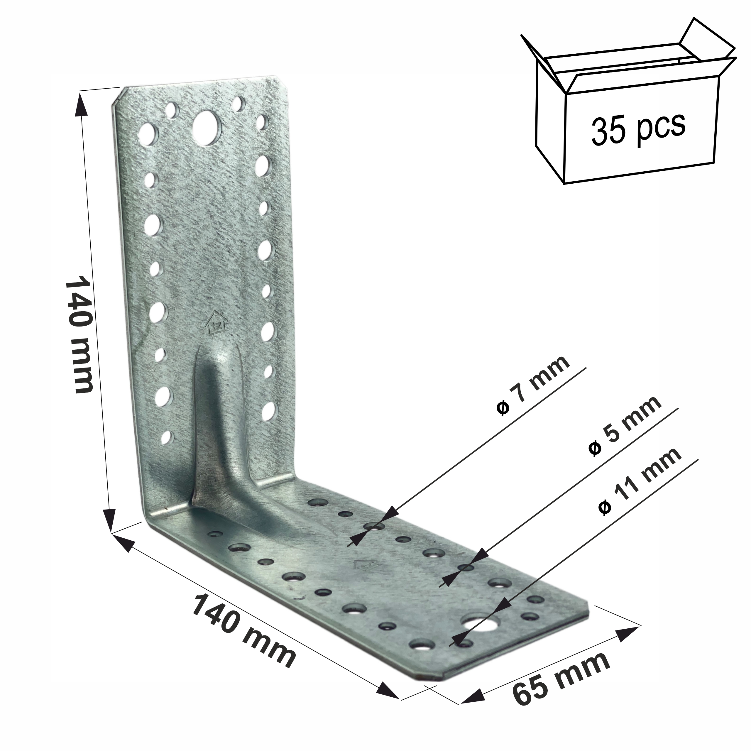Opinie o Kątowniki ciesielskie stalowe 140x140x65x2,5mm 35 szt perforowane wzmoc KP5