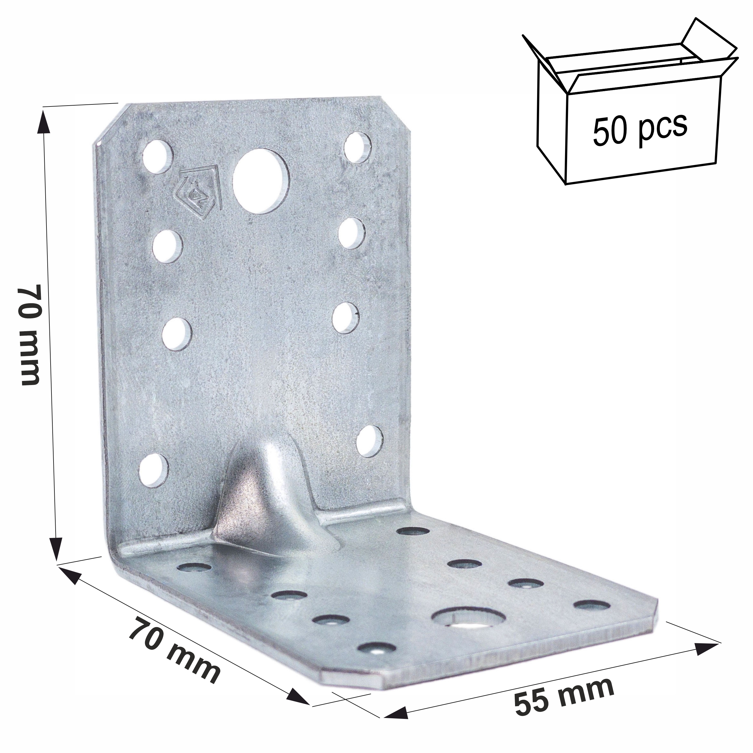 Opinie o Kątowniki ciesielskie stalowe 70x70x55x2mm 50 szt. perforowane wzmoc. KP4/2