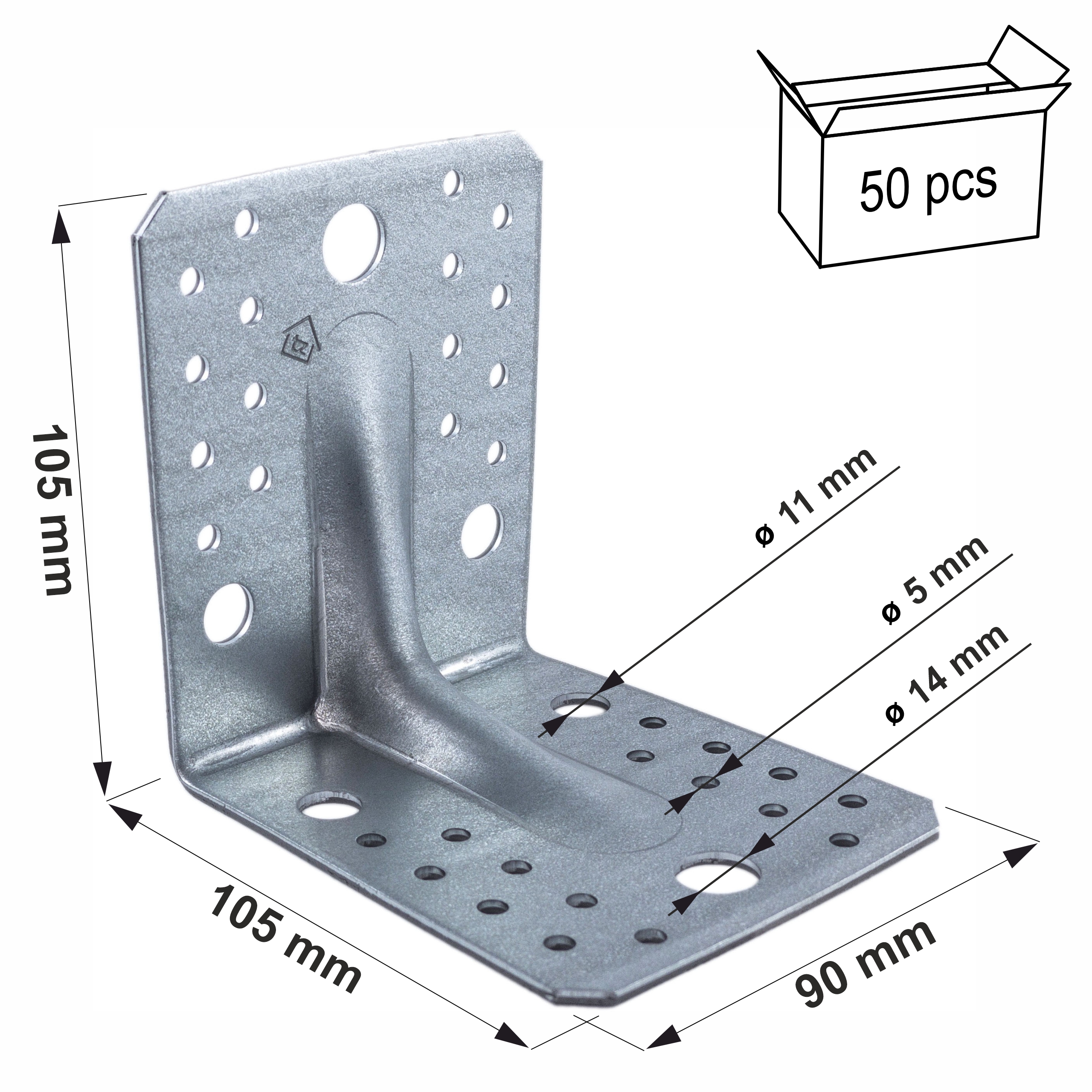 Opinie o Kątowniki ciesielskie stalowe 105x105x90x1,5mm 50szt perforowane wzmoc KP2E