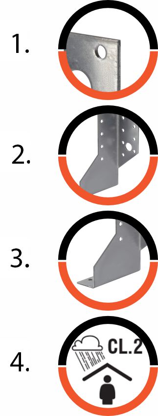 Wieszak SDE posiada perforacje, które umożliwiają precyzyjne umieszczenie gwoździ lub śrub. Konstrukcja dwuczęściowa pozwala na łatwiejszy montaż, szczególnie w trudnodostępnych miejscach.