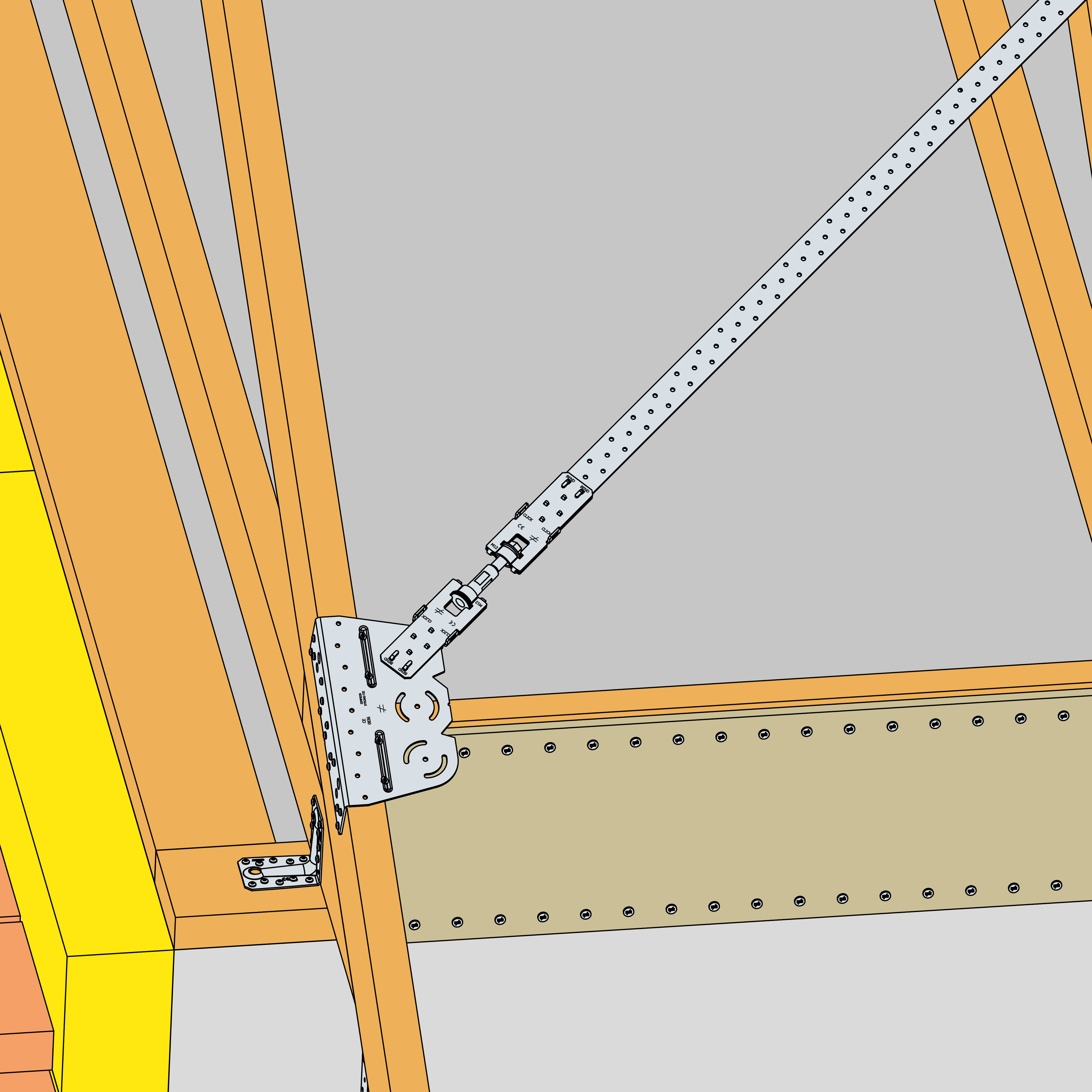Przeznaczenie: do zastosowania w systemach stężeń wiatrowych, umożliwiając szybkie i efektywne mocowanie taśmy perforowanej bez potrzeby używania dodatkowych nakrętek, śrub.