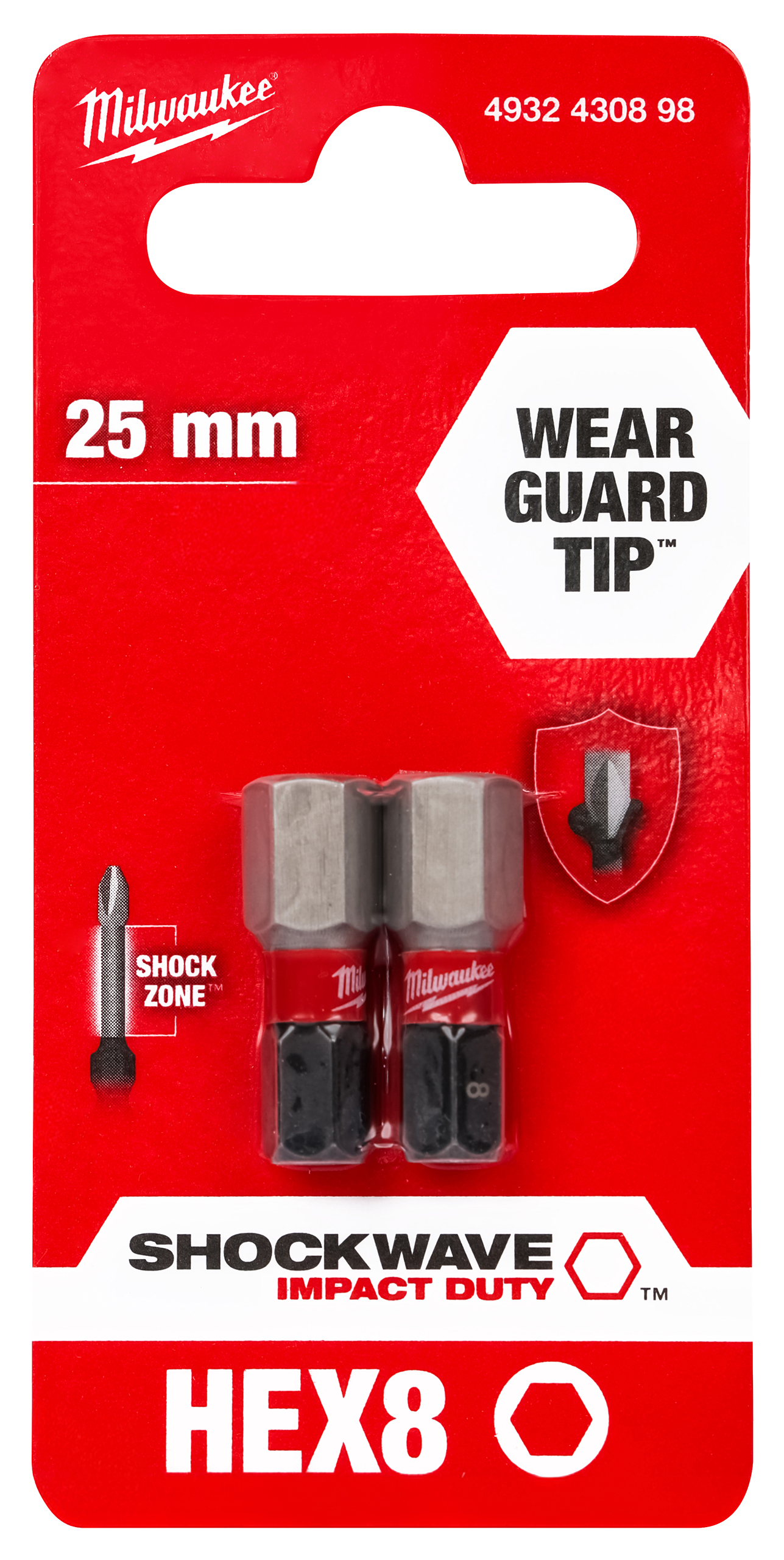 Bity udarowe Milwaukee Shockwave HEX 8 mm, 25 mm